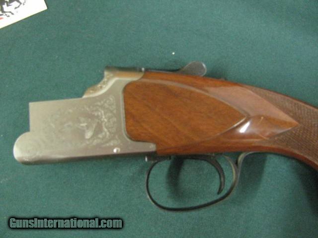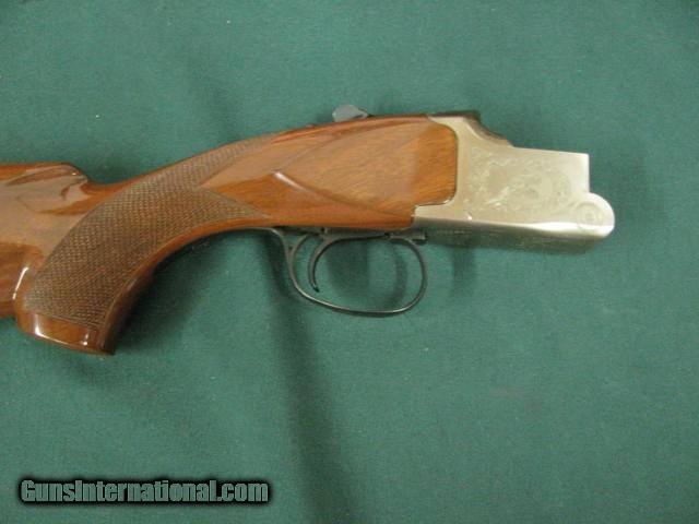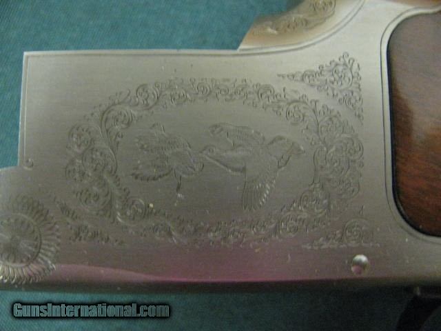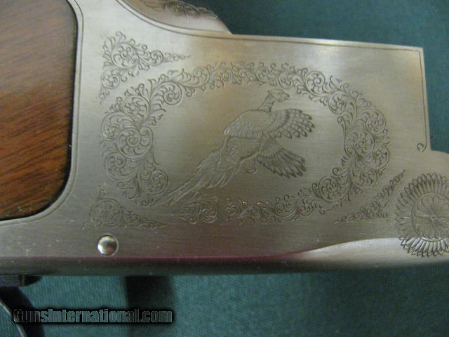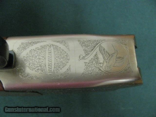 Description: 6938 Winchester 101 Lightweight 20 gauge 27 inch barrels 6 winchokes, 2sk, ic,mod,f,xf,wrench,pouch,Winchester Pamplet,correct Winchester box serialized to gun,all original,PHEASANTS/QUAIL COIN SILVER ENGRAVED RECEIVER, Winchester butt pad. ejectors,A+figured walnut. 99% condition. SOLD |