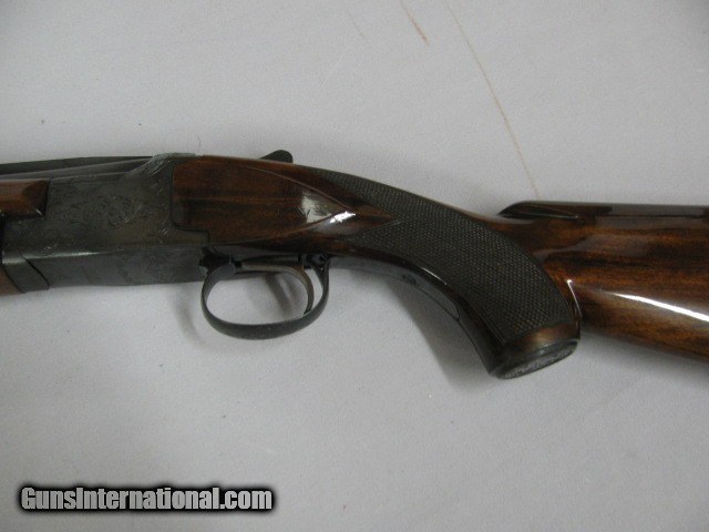 Description: 7585 Winchester 101 20 gauge 26 inch barrels skeet/skeet pistol grip with cap, vent rib ejectors, opens closes tite, bore is brite/shiny, butt pad, lop 14, 96% condition. AA+dark figured walnut. SOLD Shotgun Gauge: 20 Gauge |