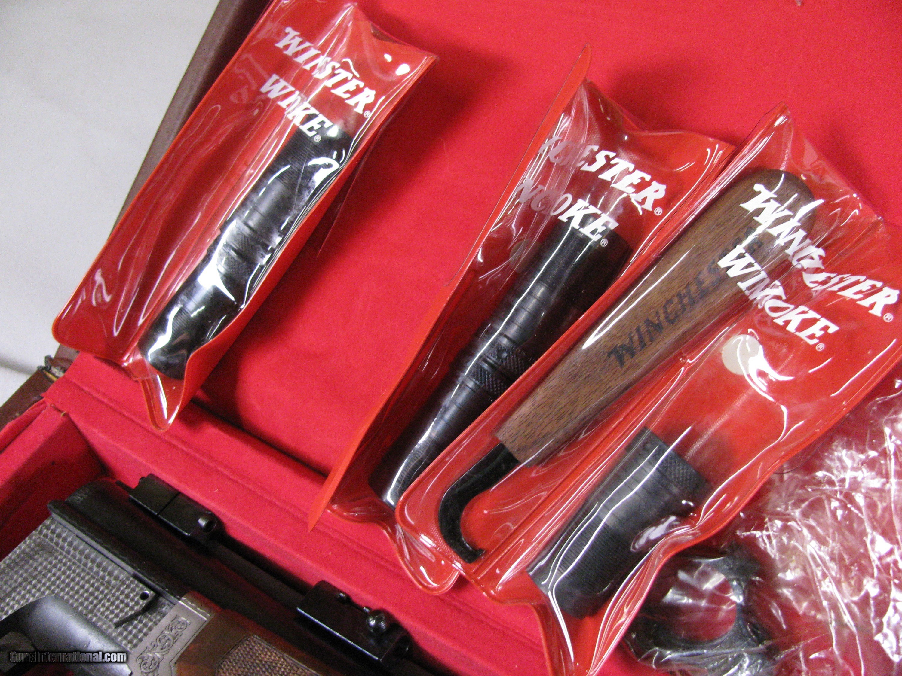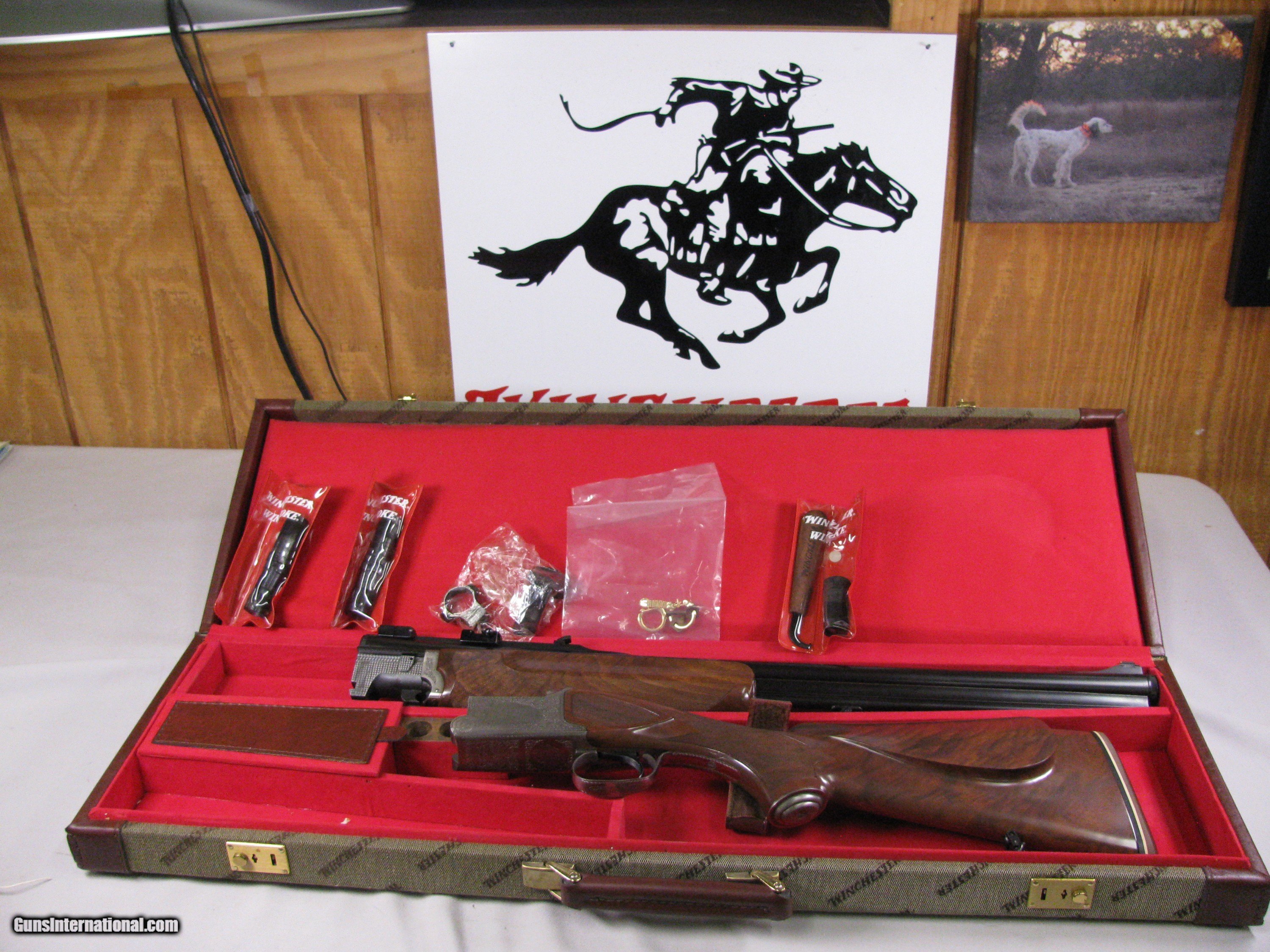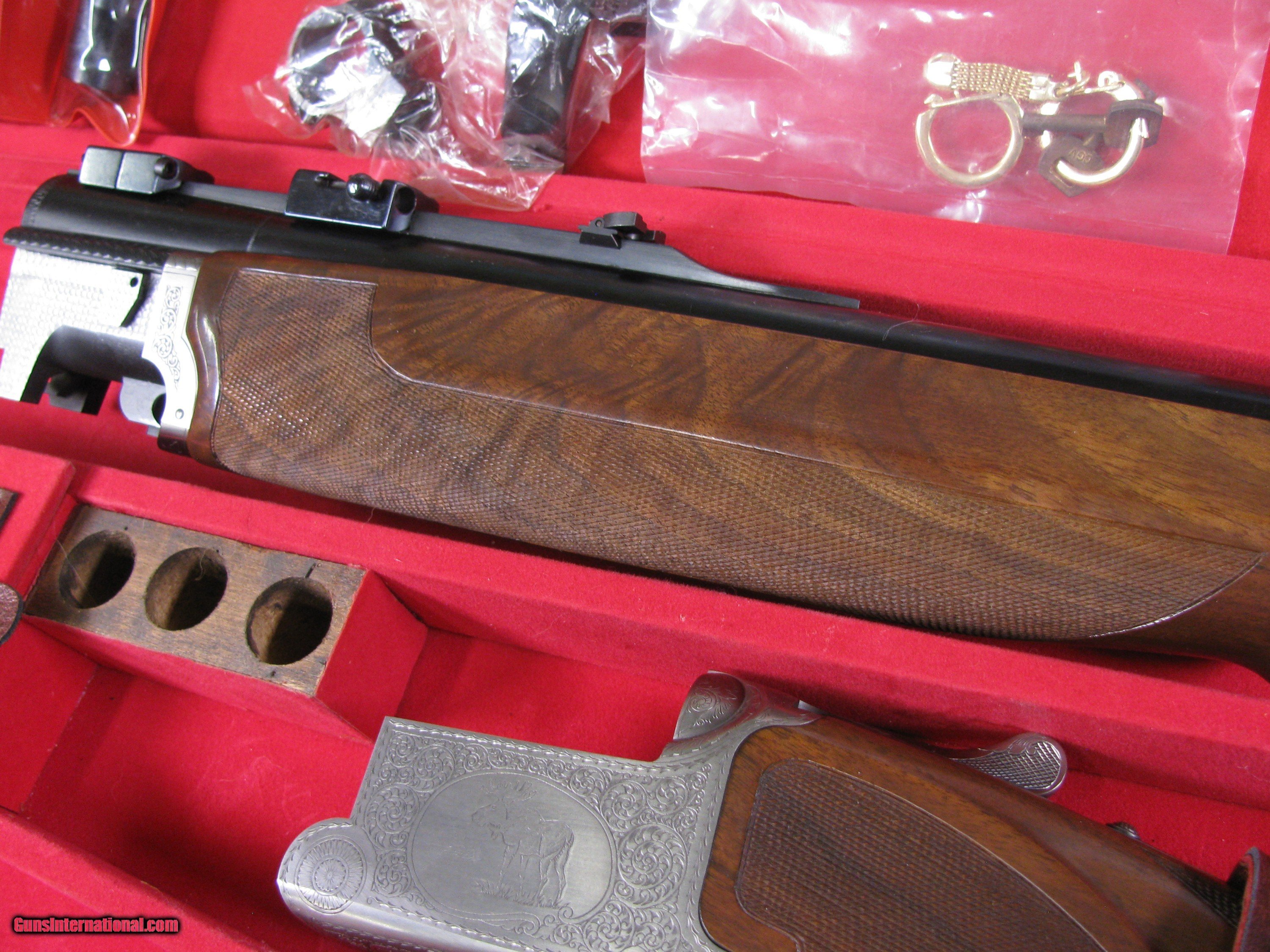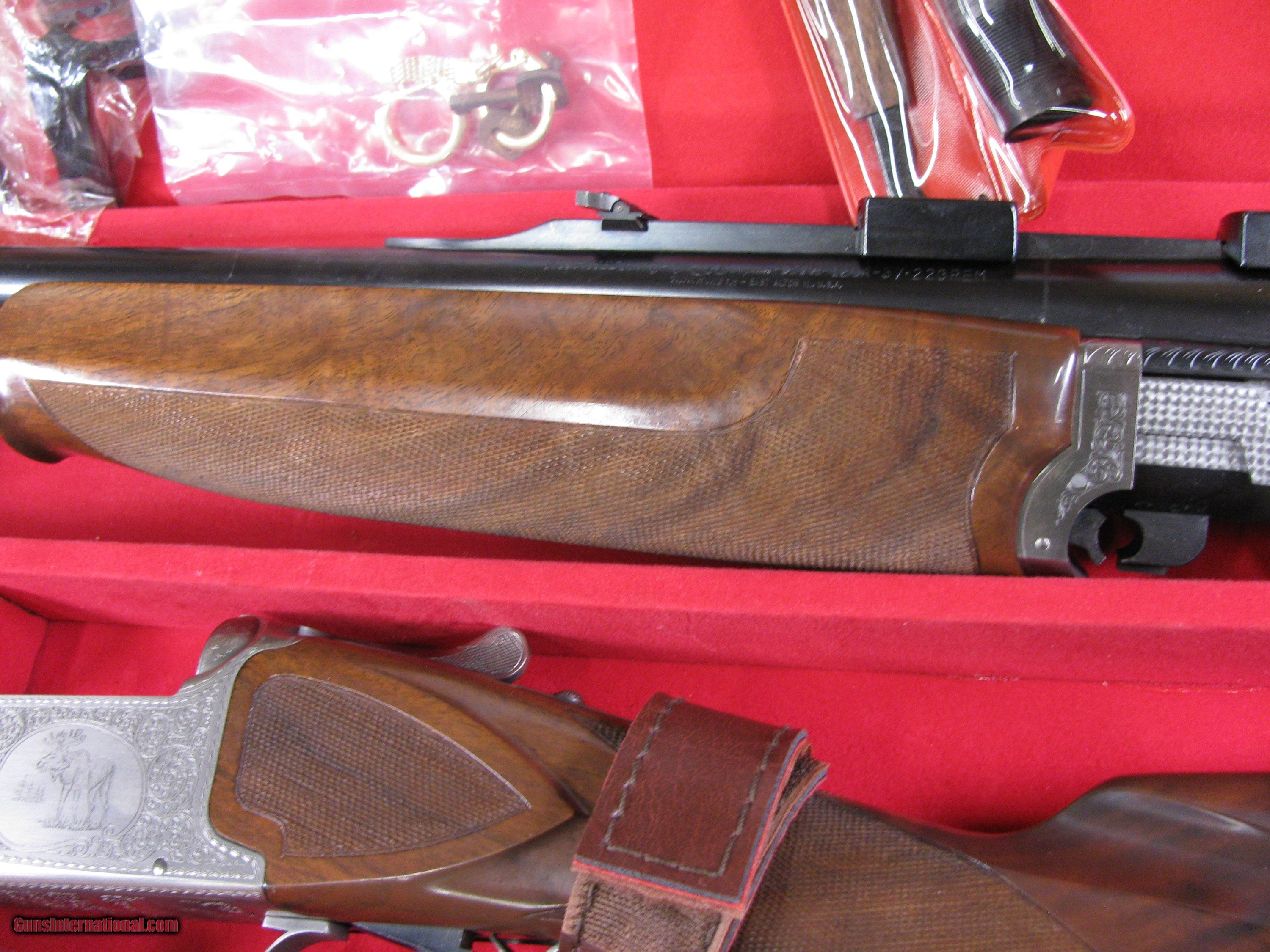 Description: 7999 Winchester 101 Grand European XTR, 12 Ga 3” over 223 Rem, Screw in Chokes, Sk, IC, IM, XF, M, F, with tool and pouches, Ring and bases, Beautiful green Winchester case with red interior and keys. SOLD Rifle Caliber: .223 Remington Shotgun Gauge: 12 Gauge |
