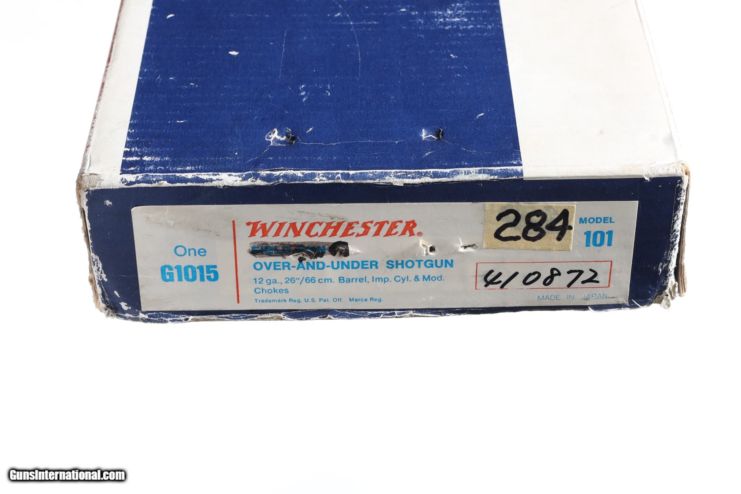 Description: Chambers marked 2 3/4 inches with automatic ejectors, and chokes marked "IMP.CYLD"/"MOD". Includes the original factory box. Stock measurements: 1 1/2 inch drop at comb; 2 1/2 inch drop at heel; 14 1/8 inch length of pull; weight 7 lbs. 7 oz. • Free Shipping, No Credit Card Fees. • Lay-a-way available for this firearm. • 1/3 Down, a 1/3 in 30 Days 1/3 in 60 Days. SOLD Manufacturer: Winchester Model: 101 Serial Number: K410872 Barrel Length: 26 |