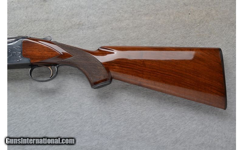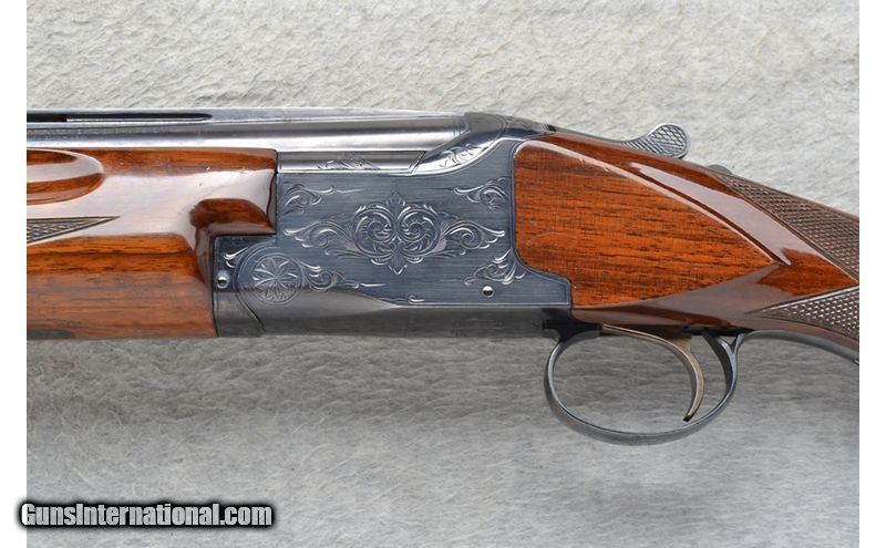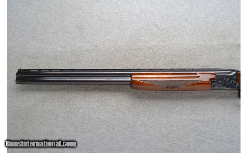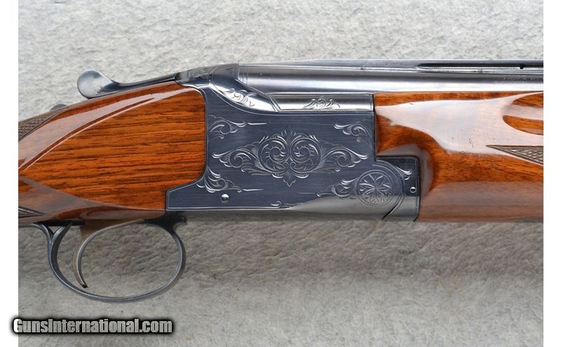 Description: This Winchester Model 101 is a right hand Over & Under 12 Ga. shotgun. It has 26 inch barrels with ejectors and a ventilated rib. A white bead front sight. With 2 3/4 inch chambers it has fixed Mod. and Imp. Cyl. chokes. SST. The butt stock is a checkered grip walnut pistol grip with a steel cap. The forearm is a checkered grip walnut with finger grooves. It has a nicely engraved receiver. 12 Gauge SOLD Chambers: 2 3/4 inch. Metal Condition: Very good. Minor handling marks and minor surface blemishes. Wood Condition: Good. Light handling marks. Bore Condition: "Bright, clean and shiny. Barrels: 26 inch barrels with ejectors and a ventilated rib. Triggers: SST Stock Dimensions: LOP 13 7/8 inches. Fore End: Checkered grip walnut with finger grooves. Butt Pad: Winchester checkered black plate. Weight: 7 lb. 10 oz. Sights: White front bead. Chokes: Fixed Mod. and Imp. Cyl. Item Location: Richfield, WI |