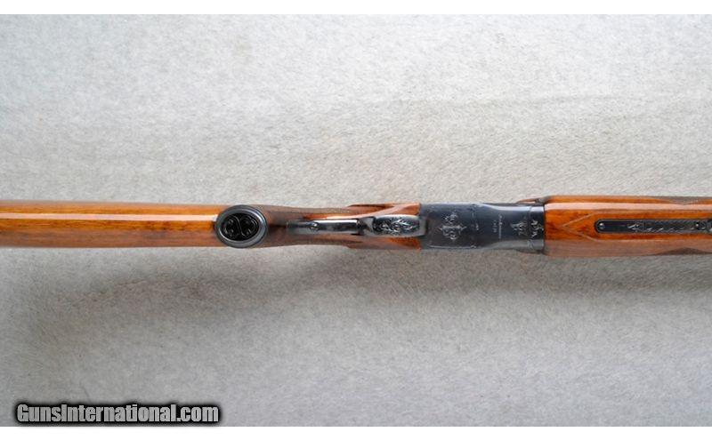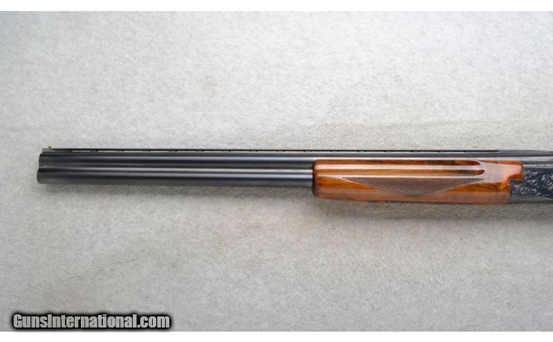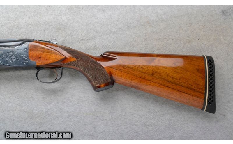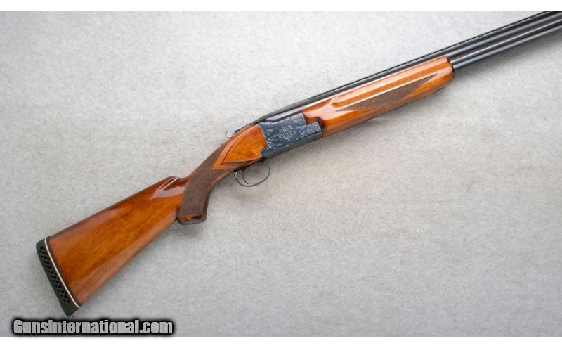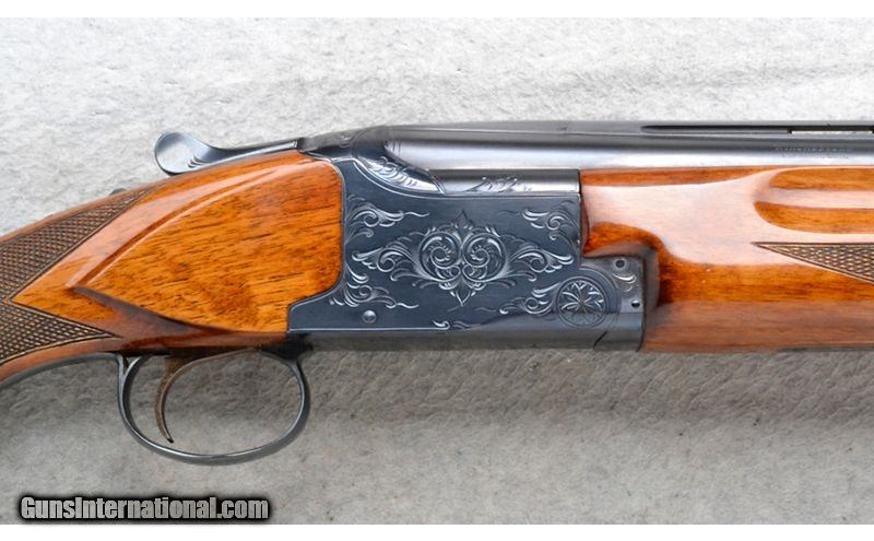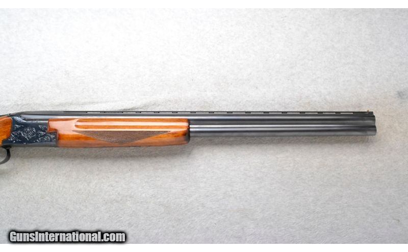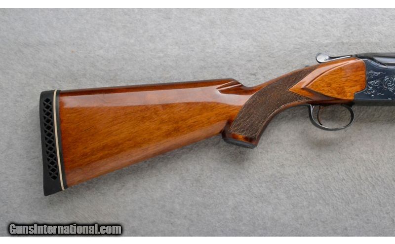 Description: This Winchester Model 101 is an over and under shotgun in 12 Ga. It has 26 inch barrels with a top barrel ventilated rib. A brass bead front sight. With 2 3/4 inch chambers it has fixed Imp.Cyl. and Mod. chokes. It has a SST. The butt stock is a checkered grip walnut pistol grip with a black steel cap. The forearm is a checkered grip walnut with finger grooves. The receiver is engraved. Made in Japan. 12 Gauge SOLD Chambers: 2 3/4 inch. Metal Condition: Excellent. Wood Condition: Very Good. A couple of minor handling marks and small very minor top finish blemishes. Bore Condition: "Clean, bright and shiny. Barrels: 26 inch barrels with a top barrel ventilated rib. Triggers: SST Stock Dimensions: LOP 13 1/2 inches. Fore End: Checkered grip walnut with finger grooves. Butt Pad: Pachmayr White Line black rubber recoil pad. Weight: 7 lb. 8 oz. Sights: Brass front bead. Chokes: Fixed Imp. Cyl. and Mod. Item Location: Richfield, WI |