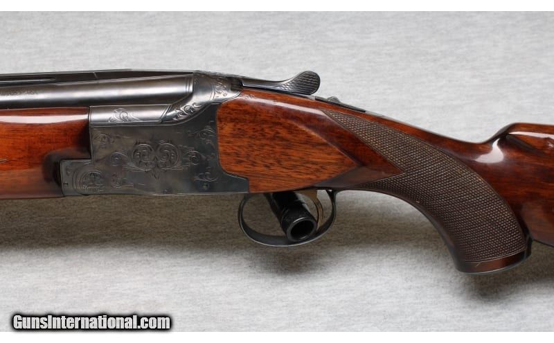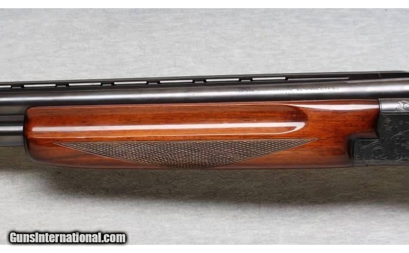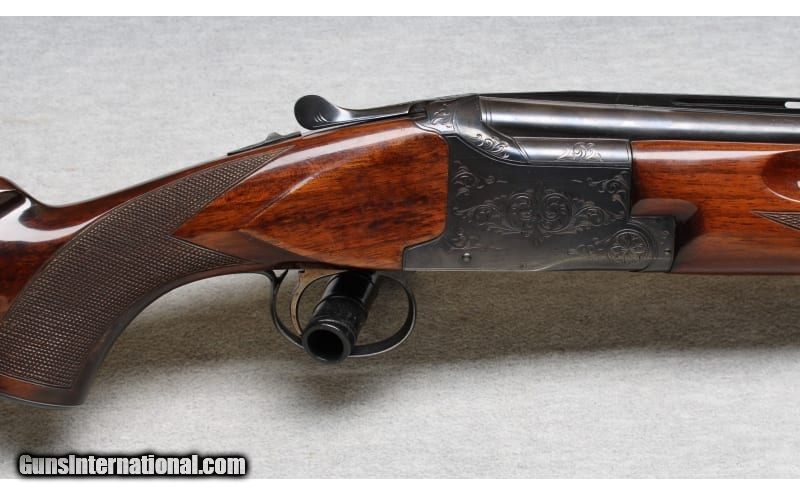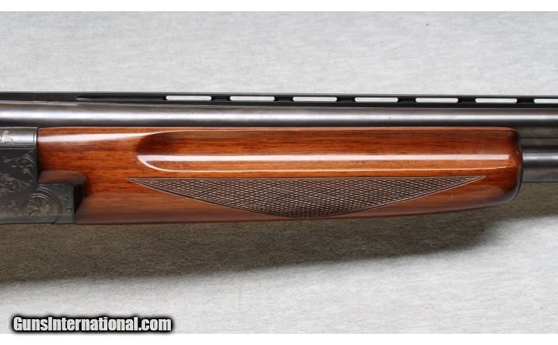 Description: Very good condition, light finish wear, small nicks and light sratches. Classic Winchester Model 101 with factory engraving, 30" ribbed barrels, mod and full chokes, high gloss finish wood and Pachmayr recoil pad. 12 Gauge SOLD Chambers: 3 Metal Condition: Very good Wood Condition: Very good Bore Condition: Bright Barrels: 30 Triggers: Factory Stock Dimensions: 14 1/4" LOP Fore End: Checkered Butt Pad: Pachmayr recoil pad Sights: Single gold bead Chokes: Fixed mod and full Item Location: La Vista, NE |