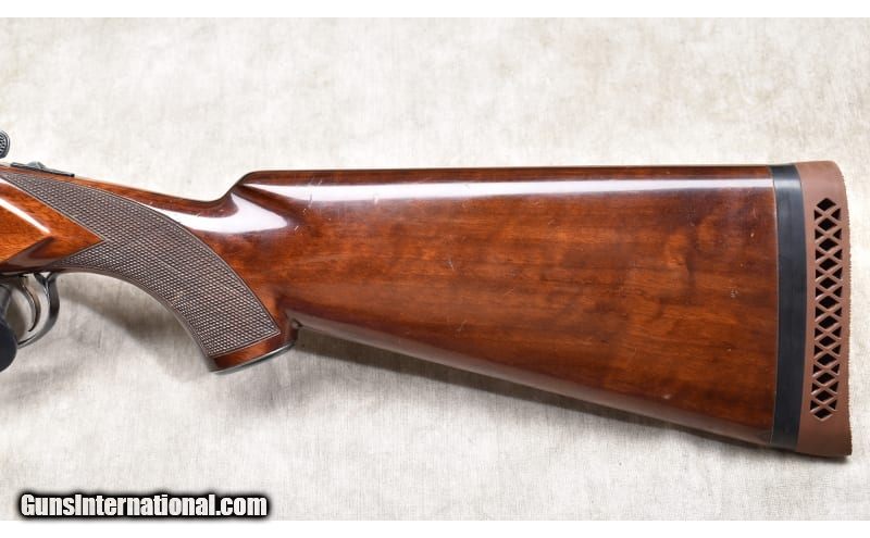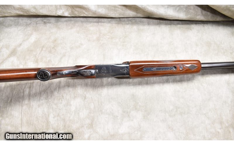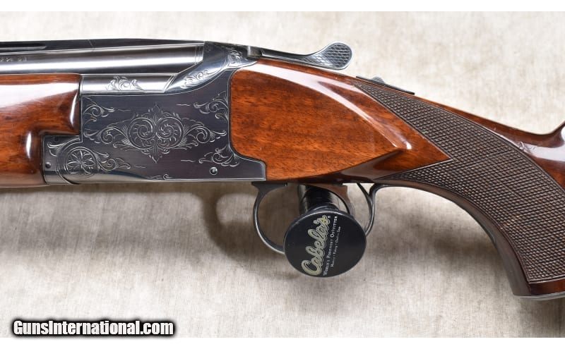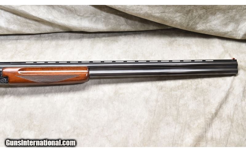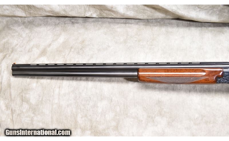 Description: A classic hunting gun featuring better grade walnut, ventilated rib, blue receiver with Acanthus engraving. 12 Gauge SOLD Chambers: "Two, 2-3/4 or 3-inch. Metal Condition: Excellent. Wood Condition: Very good. There are a number of handling marks and scratches. Bore Condition: Shiny and bright. Barrels: 30-inch Triggers: Factory single selective trigger. Stock Dimensions: 14-1/8 inch LOP. Fore End: Well-matched beavertail. Butt Pad: Pachmayr ventilated rubber pad. Weight: 7 lb - 14 oz Sights: Ventilated rib with fiberoptic and gold beads. Chokes: "Fixed choke, Full and Full. Item Location: Rogers |