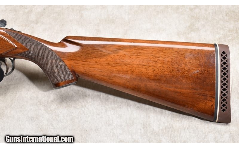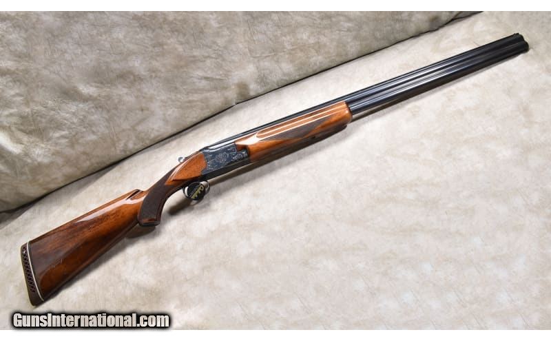 Description: Nice Model 101 for the Winchester fan featuring a better grade of walnut, nice blue, and fixed chokes. It has a White Line Pachmayr recoil pad, and vent rib with gold beads. It would make a very nice pass shooter or Sporting Clays shotgun. YOM 1969. 12 Gauge SOLD Curio/Relic: Yes Chambers: "2 rounds, 12 gauge, 2-3/4 inches Metal Condition: Very good. There are a couple light scratches along the barrel. Wood Condition: Very good. There are a number of light to moderate scratches. Bore Condition: Shiny and bright. Barrels: 30 inches Triggers: Factory single selective trigger. Stock Dimensions: LOP: 15 inches. Fore End: Well-matched checkered walnut beavertail. Butt Pad: Ventilated rubber Pachmayr pad. Weight: 7 lb - 15 oz Sights: Ventilated rib with gold fore and mid-beads. Chokes: Fixed Modified and Full Item Location: Rogers |