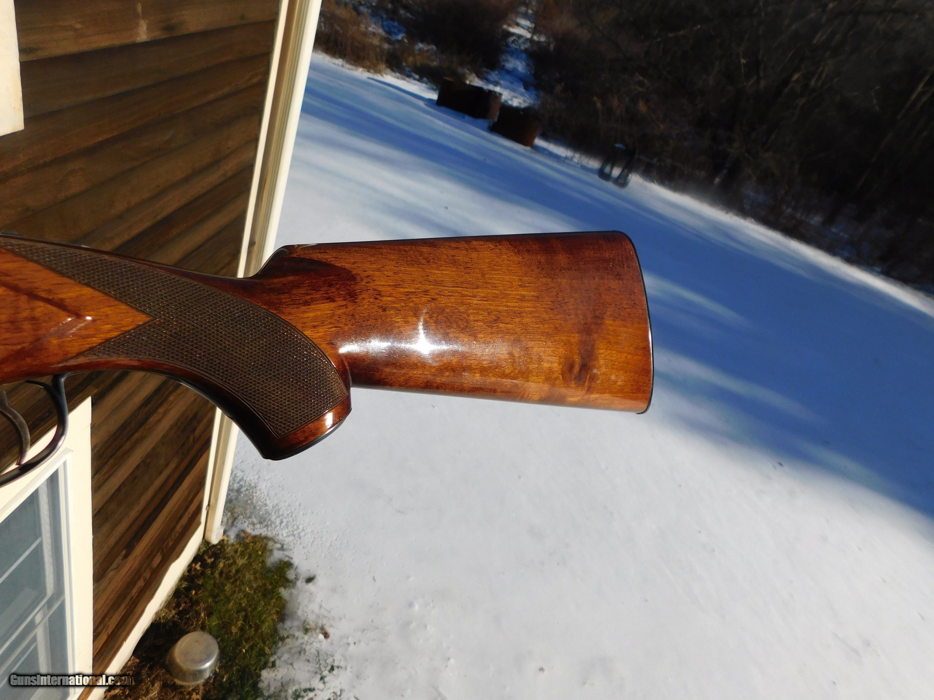 Description: SALE PENDING WM A. GA 1/22/24 Wow..not kidding...we don't see a mark on this beautiful gun; distinctive dark American Walnut Factory Hand Checkered Stock Set. 26" VR Barrel Marked IC/Mod 12 ga. LOP is 14" to factory butt plate. This gun was likely test fired but clearly not carried or hunted at all. Gerogous deep factory engraved reciever with blue at 100%. Single selective trigger, factory metal pg cap. This gun looks like the day it left the factory over 50 yrs ago. (it is believed to be a 1969 gun). No box See our Win 101 Quail Special also listed here (see Sellers Other Items) Shiping is 4 59.00 IF IT DOES NOT SAY ."SALE PENDING, UNDER DEPOSIT or ON HOLD"...IT IS AVAILABLE. WE DO NOT REPLY TO INQUIRIES THAT SAY "INTERESTED IN THIS GUN" OR "IS IT AVAILABLE" IF YOU WOULD LIKE TO BUY THIS OR ANY OF OUR GUNS WE SUGGEST YOU PHONE US; WE ARE OFTEN AVAIALABLE LONG HOURS. IF YOU ARE INTERSTED IN A GUN THAT IS UNDER DEPOSIT AND WOULD LIKE TO BE NOTIFIED IF A SIMILAR GUN COMES IN DROP US A LINE AND WE WILL MAKE EFFORTS TO CONTACT YOU WHEN ONE DOES COME IN. WE HAVE OVER 2000 SALES ON ALL SITES WITH AN A+ RATING ON ALL WE ALSO KEEP AN INVENTORY OF OLDER PERIOD CORRECT SCOPES; CALL WITH NEEDS WE MOSTLY PICK VERY CLEAN AND LIGHLTY USED GUNS. WE ARE HAPPY TO TAKE CONSIGNMENT GUNS AND COLLECTIONS OR WILL BUY YOURS OUTRIGHT. WE SOMETIMES ARE EMPLOYED FOR ESTATE PURPOSES AND VALUATIONS. AT THIS TIME WE ARE ONLY ACCEPTING US POSTAL MONEY ORDERS OR BANK CHECKS FOR PAYMENT IT IS THE BUYERS RESPONSIBILITY TO GET US A COPY OF YOUR RECEIVING FFL'S LIC AND A COPY OF YOUR PHOTO ID BEFORE THE GUN SHIPS YOU MUST CALL OR CONTACT YOUR FFL.WE DO NOT CALL FOR YOU UNLESS THEY RQUIRE IT. LAYAWAY PURCHASES NOT COMPLETED ON ANY RETURNED ITEM UNLESS NOT AS DESCRIBED OR DAMAGED ARE SUBJECT TO A 10% RELISTING/RESTOCKING FEE AND MUST BE RETURNED WITH NO NEW MARKS OR SCRATCHES, SENT BACK INSURED, PRIORITY SIGNATURE REQUIRED. ALL INFORMATION CONTAINED HEREIN IS BELIEVED TO BE ACCURATE BUT IS NOT GUARANTEED. WITH ANY OLDER OR USED GUN IT SHOULD BE INSPECTED BY A GUNSMITH PRIOR TO SHOOTING. SOLD |