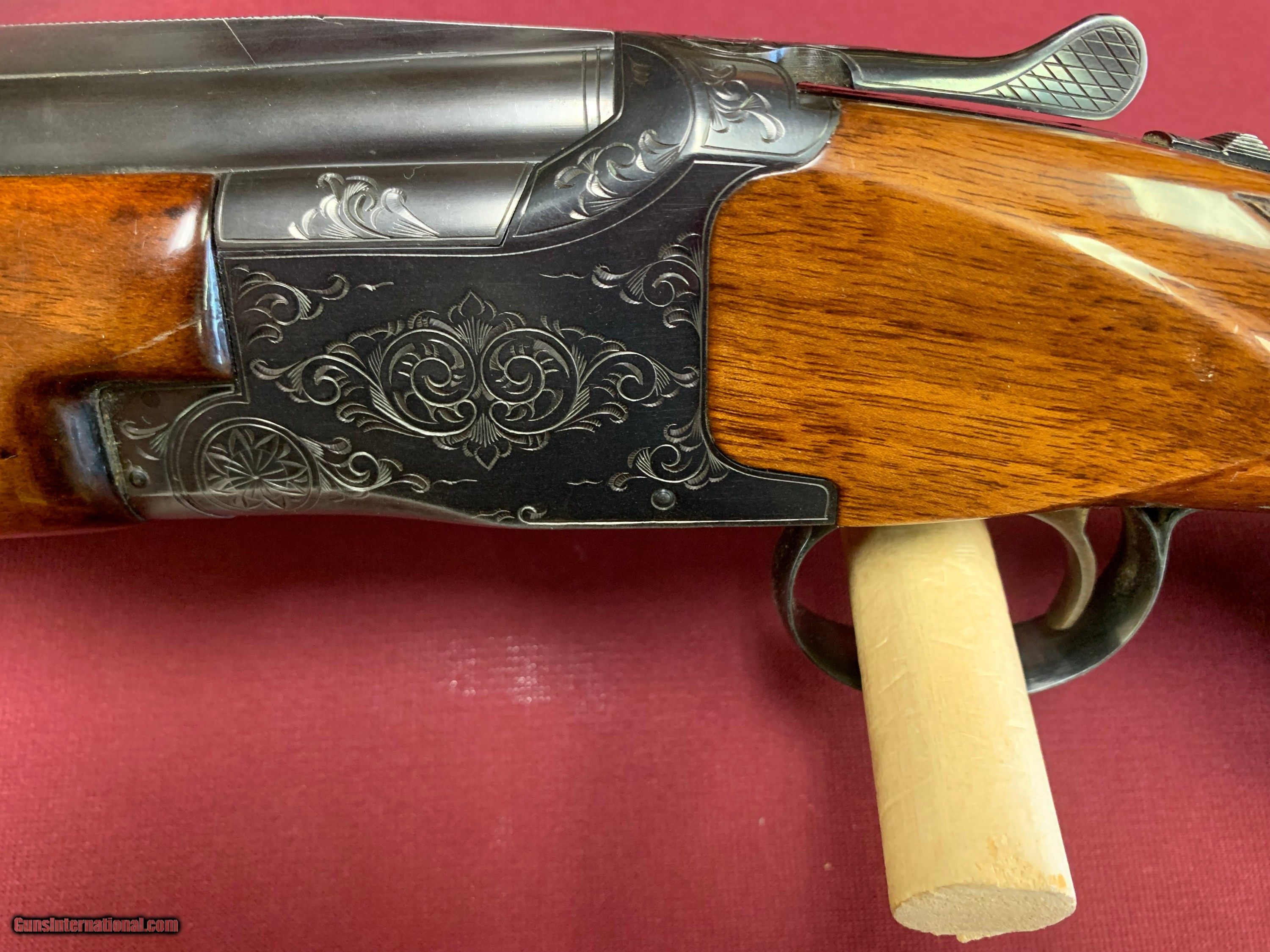 Description: 28" full/mod S.T., auto ejecters, 14 1/4 lop, 6.8 lbs. 98% blue, mint bores, 98% wood. $1695, buyer pays shipping, 3% card fee. SOLD Shotgun Gauge: 20 Gauge |
