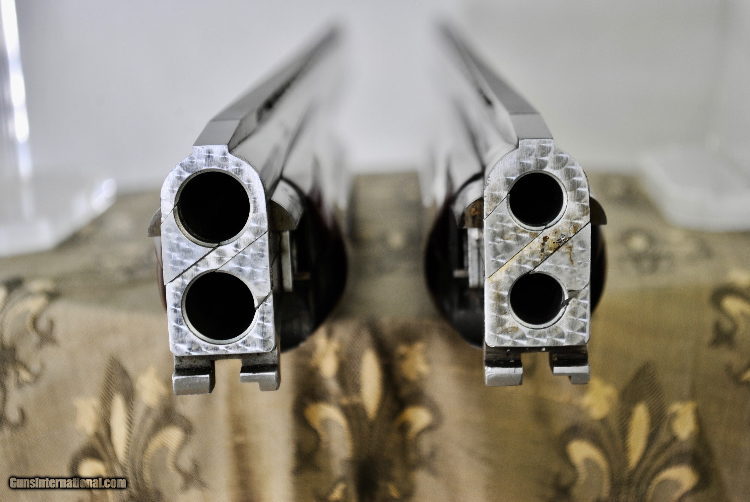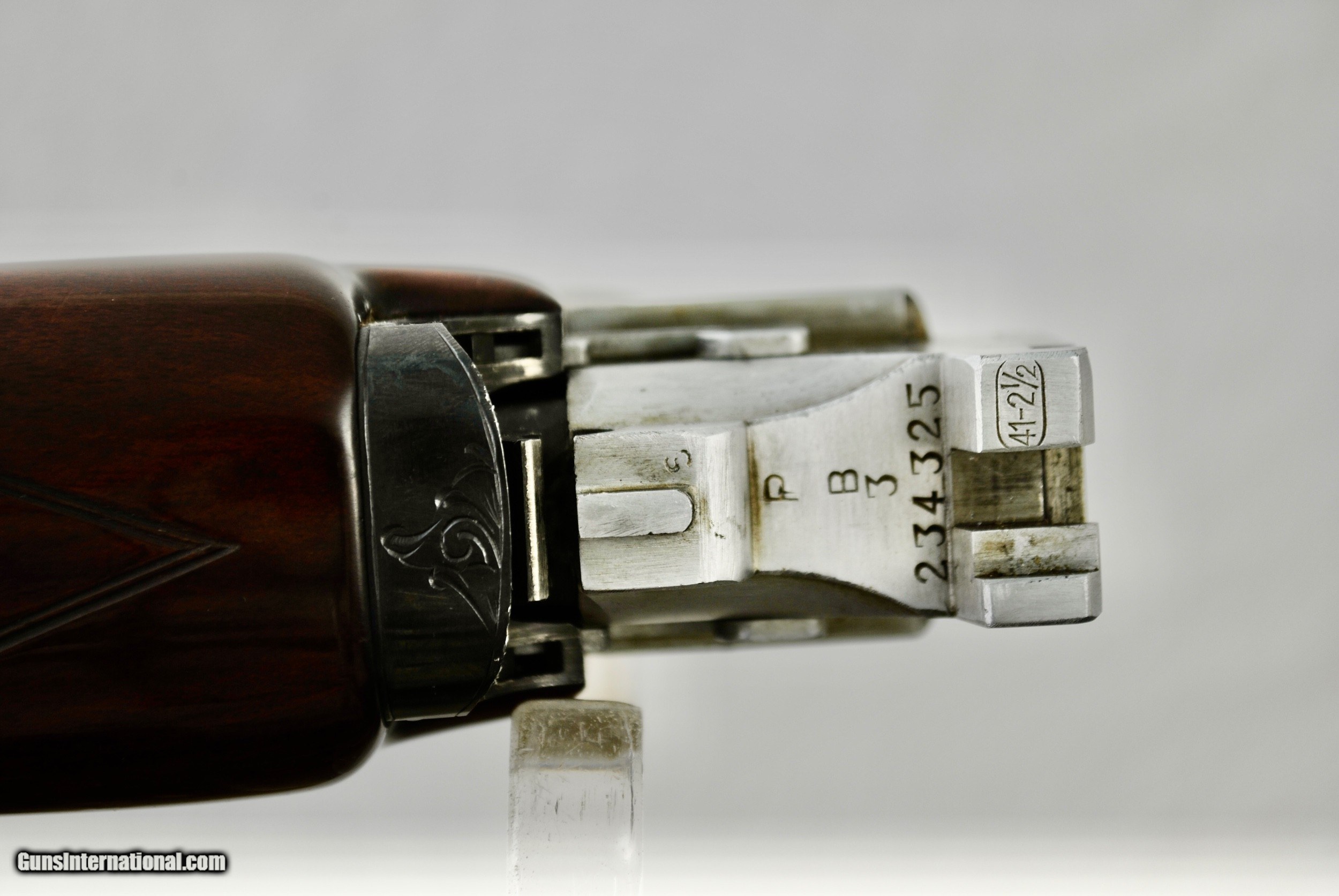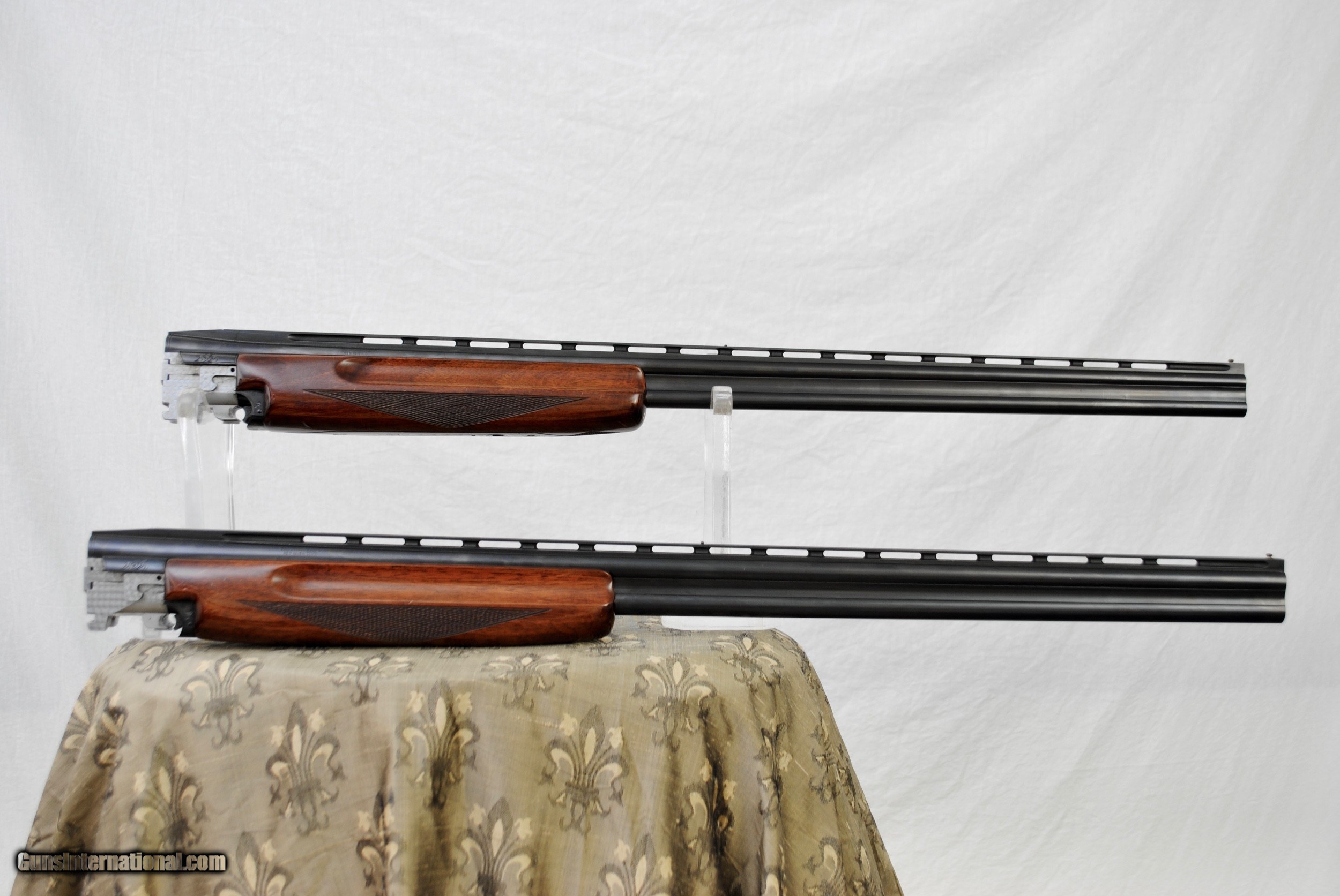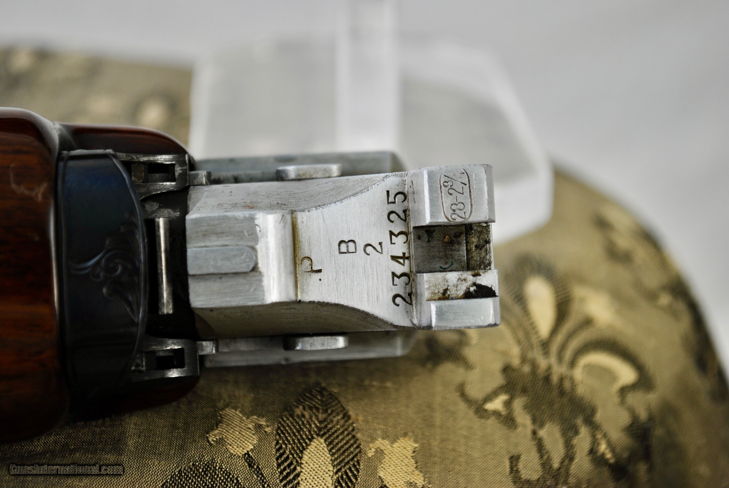 Description: Winchester 101 28 gauge and 410 Skeet barrels with forends. These are two matching serial numbers barrels and forends that somehow where separated from the 20 gauge receiver. Barrels are 28" with skeet chokes and mirror bores. The 410 barrels are chambered for 2 1/2". The 28 gauge 2 3/4". The blue on the barrels and receiver iron is 99% +. The wood has a few light handeling marks. The jeweling on the barrel monoblock is quite good indicating low use. The weight of each barrel set and forend is within less than 1/4 once of each other at 3 LBS 14 OZ. Tollerances are quite good on Winchester 101 Shotguns and these barrels should be able to be fit a 20 gauge 101 receiver without issue. It may require some gunsmithing. These barrels can be sent directly. NO RECEIVER OR BUTTSTOCK IS INCLUDED. Shipping is $50 SOLD Shotgun Gauge: .410 Gauge |