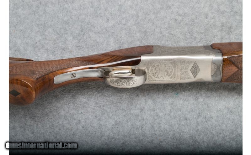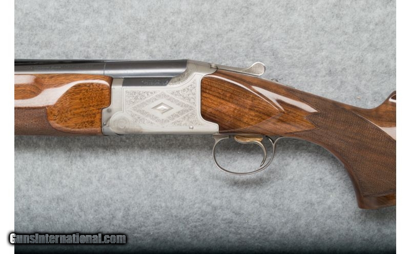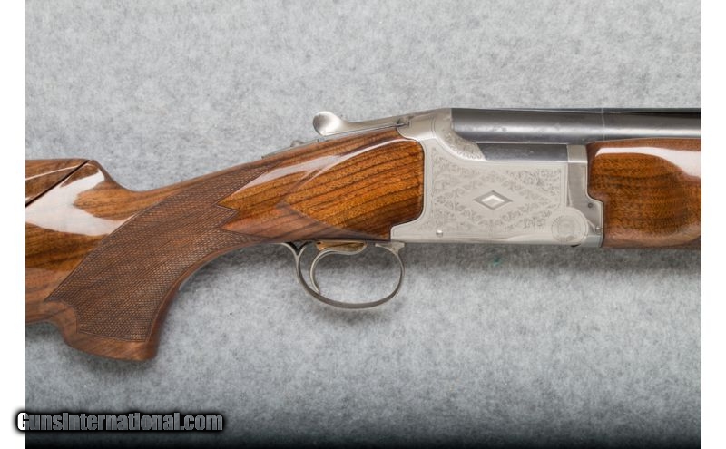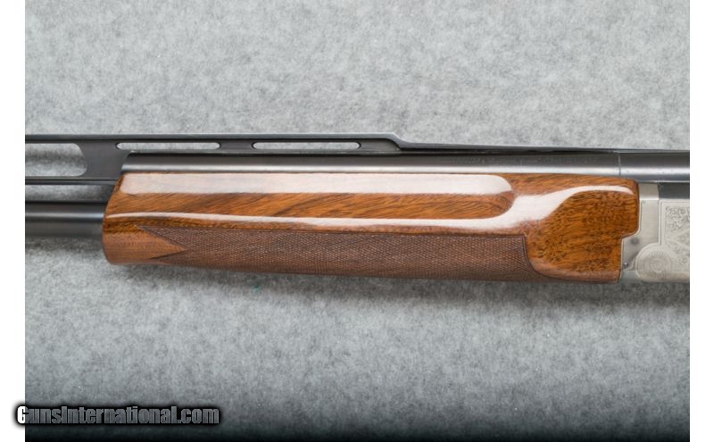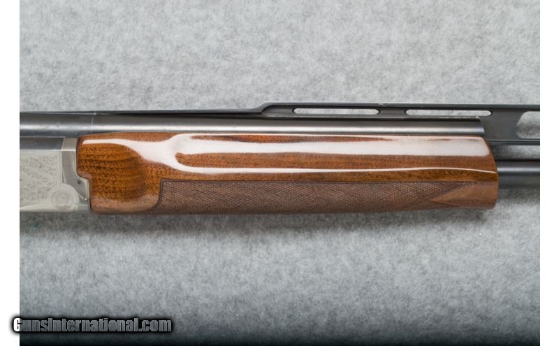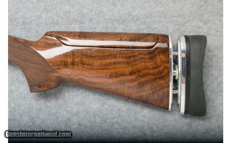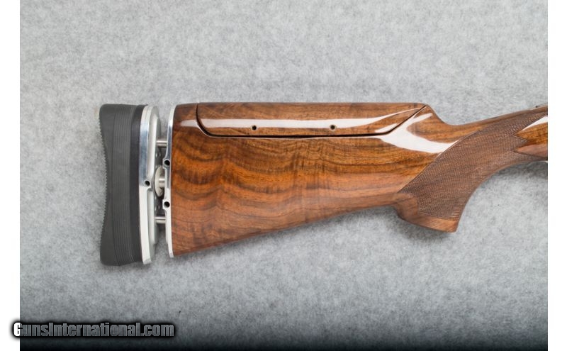 Description: SOLD Caliber Info: 12 gauge Chambers: 2 3/4 inches Metal Condition: Very good; light rust on barrel near chamber Wood Condition: Excellent Bore Condition: Clean and bright Barrels: 34" - Ported Triggers: Smooth; gold plated Stock: Checkered walnut with pistol grip; adjustable comb Stock Dimensions: Adjustable for LOP and DAC Fore End: Wide checkered walnut Butt Pad: Black rubber pad; adjustable plate with recoil reduction Weight: 9 lbs. 8 oz. Sights: White Bradley front; brass mid bead Chokes: Choke tubes Extras: Original hard case; (4) chokes and accessories. Item Location: Sun Prairie, WI |