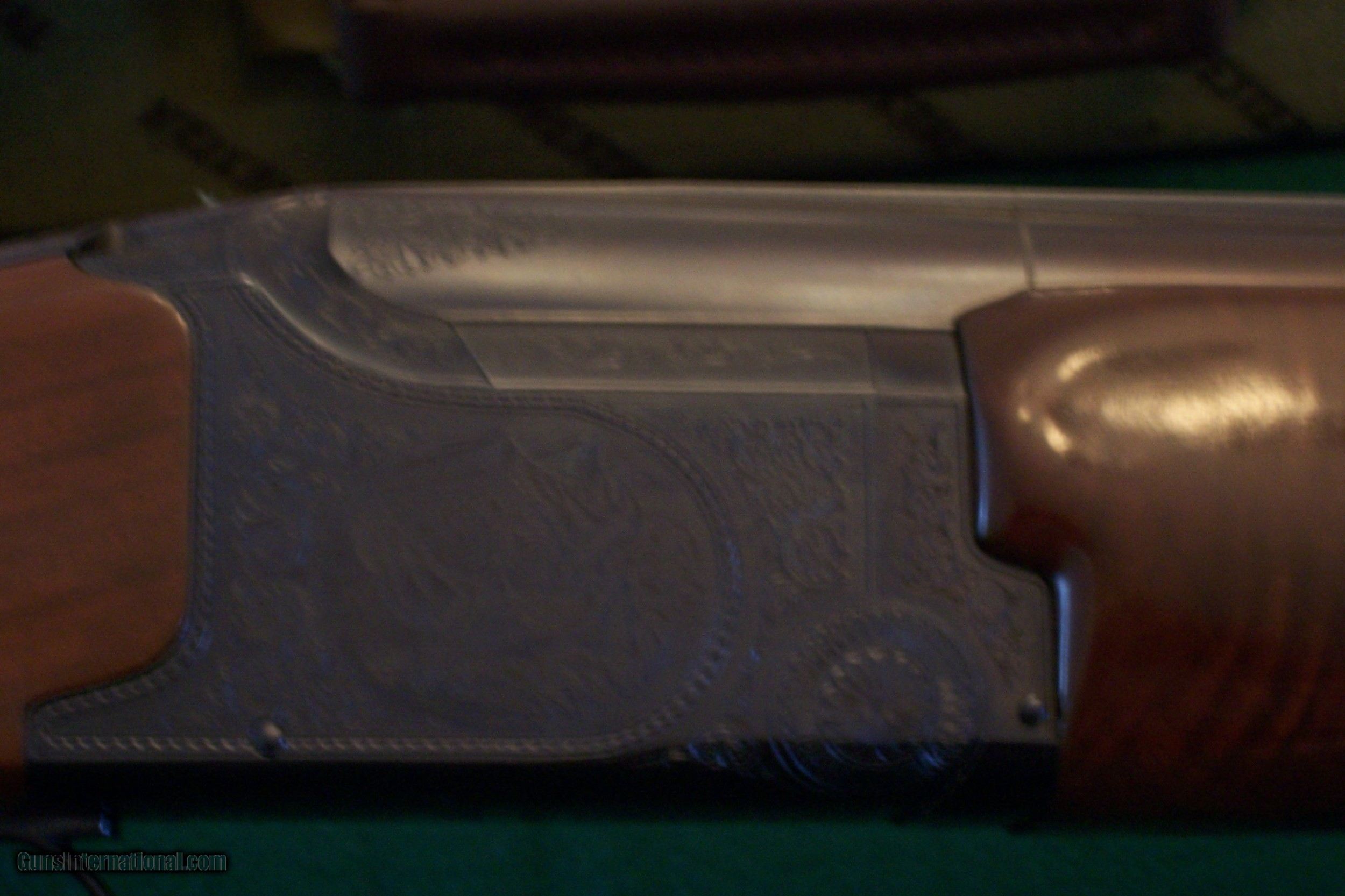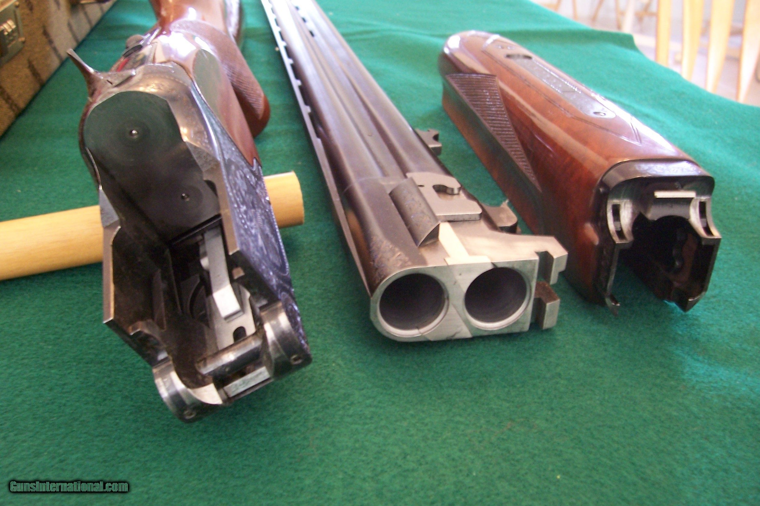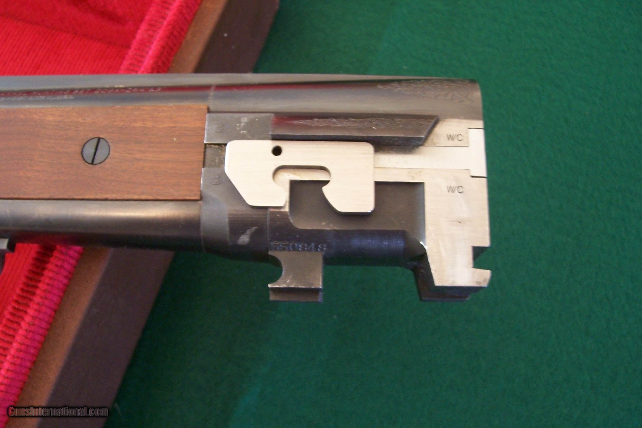 Description: Winchester mdl. 101 Field Grade 2 Barrel Hunting Set-12 or 20 ga., barrels,both with WinChokes, 26" 20ga., 28" 12ga. scroll engraved, blue receiver with game scene engraving and borders, cased, Mfg. 1984-87. This set has seen very little use.Condition is 99%. SOLD |