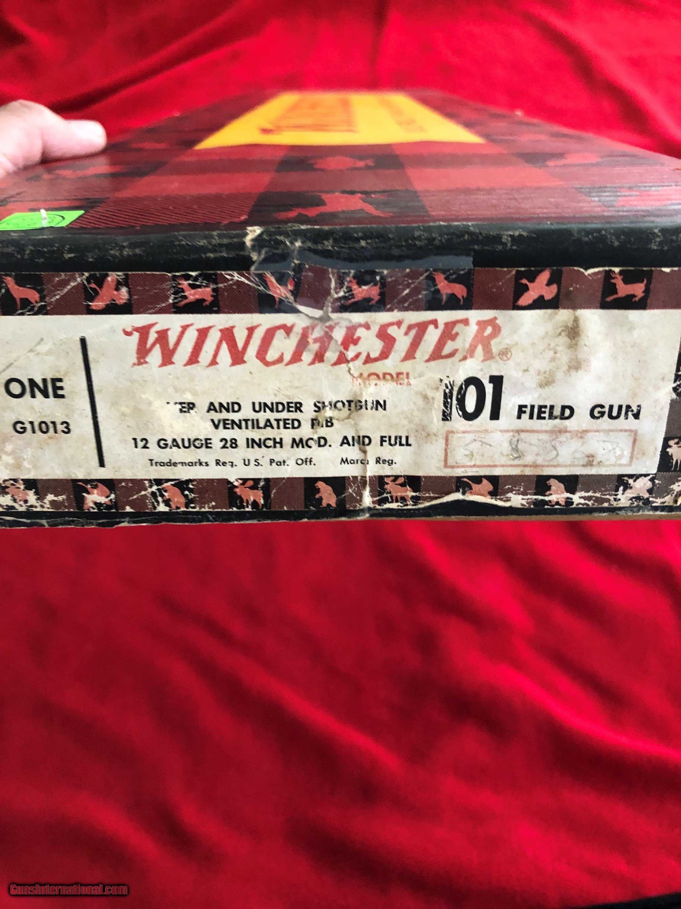 Description: Winchester Field Grade 101 with 28 inch barrels choked full and modified. Comes with original Winchester box serialized to gun. This is an early gun made in 1963. The gun has been hunted with and has a few nicks on the wood to show for it as well as thinning of the polished blueing on the left side of the receiver. The gun is in very good used condition and the bores are bright and shiney. Will make a great classic hunting firearm. 3% credit/debit card fee Shipping to lower 48 is $35 Sales tax collected if you live in Illinois SOLD Shotgun Gauge: 12 Gauge Manufacturer: Winchester Model: 101 Field Grade Serial Number: 58,XXX Barrel Length: 28 inches Bore: 12 Chambers: 2.75 Condition: Very Good Metal Condition: Very Good Wood Condition: Very Good Bore Condition: Excellent Chokes: Full/Modified Extras: Original box |