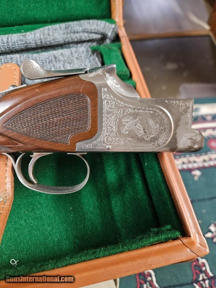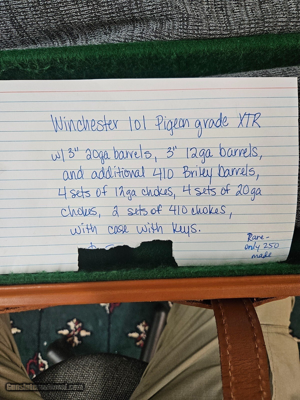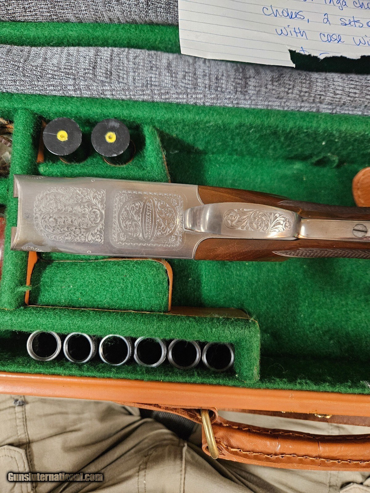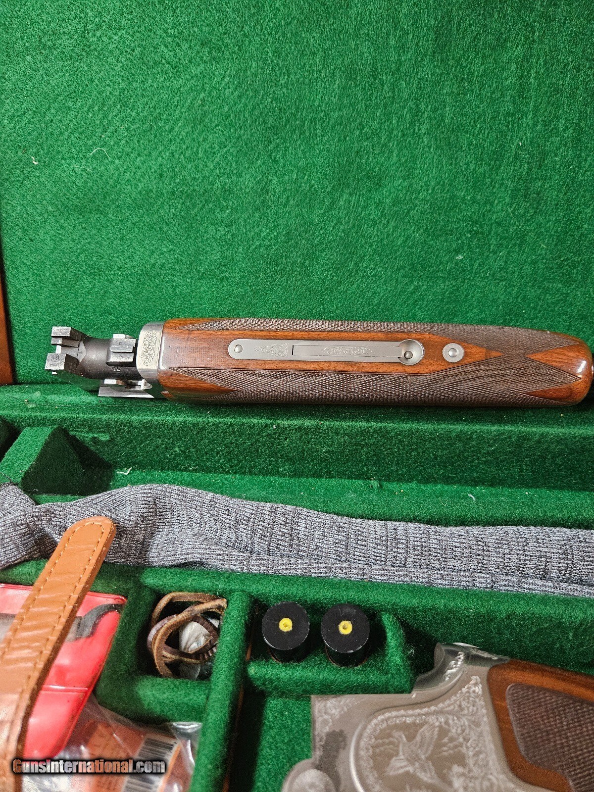 Description: Winchester 101 pigeon grade xtr. 12 ga 28 inch 3" chambers, 20 ga 28 inch 3" chambers. 410 Briley tube, fits in 20 ga. 4 sets chokes for 12 ga, 4 sets chokes 20 ga. Very nice leather case. Separate case for Briley tubes. Has some discoloration on receiver. All chambers bright and shiny. Price: $1,500.00 Buy Now Contact Seller |