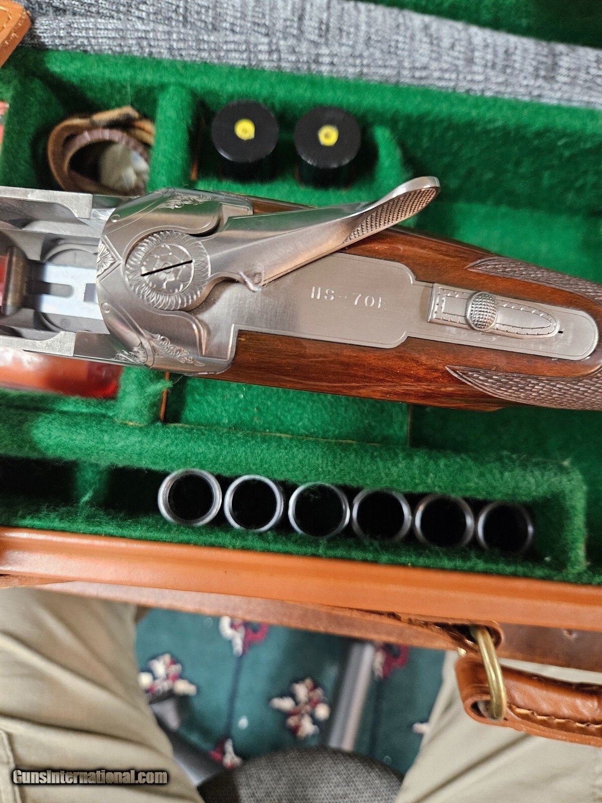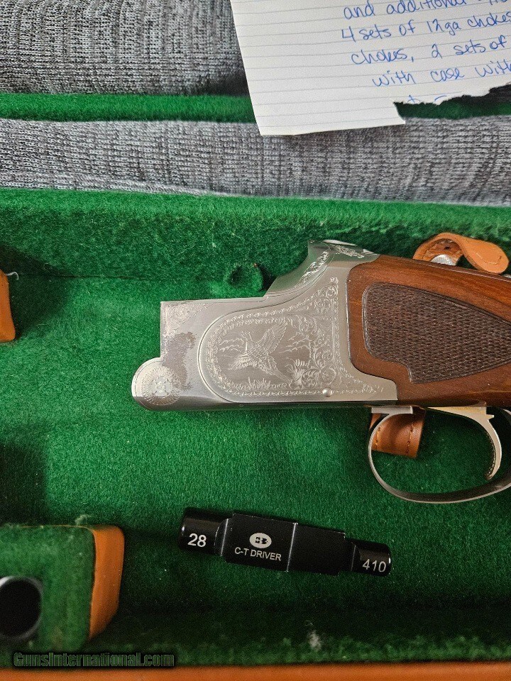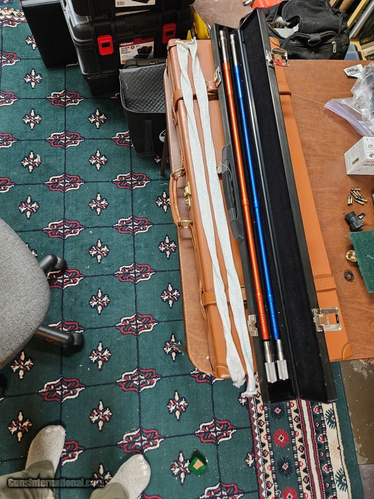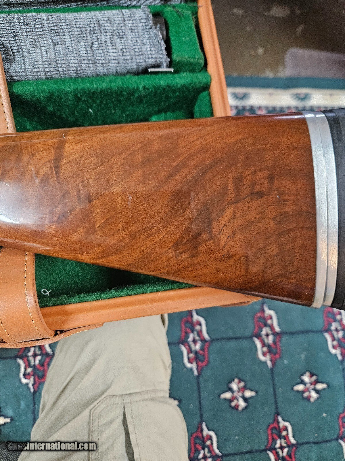 Description: Winchester 101 pigeon grade xtr. 12 ga 28 inch 3" chambers, 20 ga 28 inch 3" chambers. 410 Briley tube, fits in 20 ga. 4 sets chokes for 12 ga, 4 sets chokes 20 ga. Very nice leather case. Separate case for Briley tubes. Has some discoloration on receiver. All chambers bright and shiny. Price: $1,500.00 Buy Now Contact Seller |