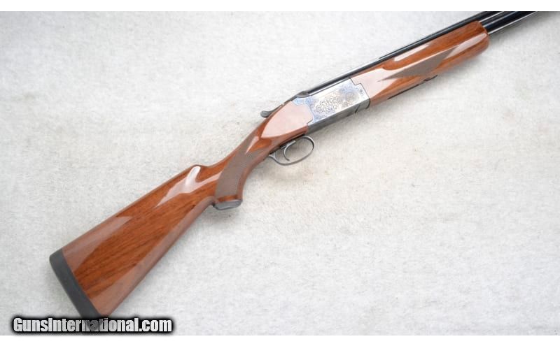 Description: This Winchester Model 101 Sporting is an over/under shotgun in 12 Ga. It has 32 inch ported barrels with ejectors and a top barrel ventilated rib. It has a red high visibility front sight with white middle bead sight. It has 2 3/4 inch chambers with Invector Plus choke and comes with choke tubes. Single selector trigger. Butt stock is checkered grip walnut pistol grip with black steel cap and Decelerator black rubber recoil pad. Forearm is checkered grip walnut with finger grooves. Receiver is lightly engraved. Made by FN in Belgium. 12 Gauge 12 Gauge SOLD Chambers: 2 3/4 inch Metal Condition: Excellent Wood Condition: Excellent Bore Condition: Excellent Barrels: 32 inch ported barrels with ejectors and top barrel ventilated rib. Triggers: SST Stock Dimensions: LOP 14 1/2 inches Fore End: Checkered grip walnut with finger grooves. Butt Pad: Decelerator black rubber recoil pad. Weight: 7 lbs. 12 oz. Sights: Red high visibility front sight and white middle bead. Chokes: Invector Plus choke. Comes with choke tubes. Item Location: Richfield, WI |