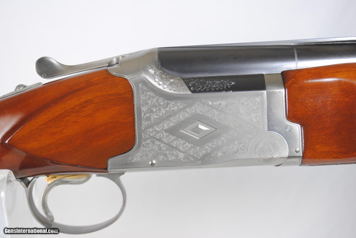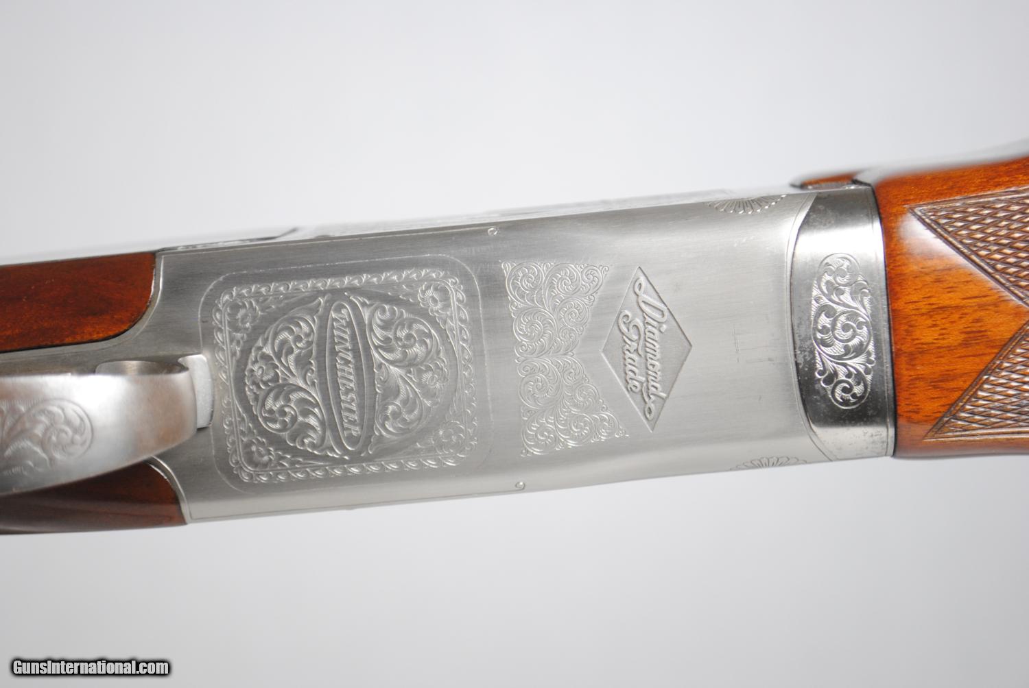 Description: Here is a nice condition Winchester Diamond Grade Unsingle Trap with 34" choke tube barrels. Bore as original at .732. Four choke tubes are included; Mod, Imp Mod, Full and Extra Full (all original Winchester Chokes). This gun is extractor only, as the ejector hammer has been disabled. Front bead is missing the ivory or orange insert. Case is in fair condition as shown. Weight of gun is 8 LBS 15 3/4 OZ. Shipping is $50. Stock dimensions follow. LOP - 14 1/2" Drop at Comb - 1 7/16" Drop at Heel - 2 1/4" For inquires please call Guy Ave - 407-721-3748 SOLD |