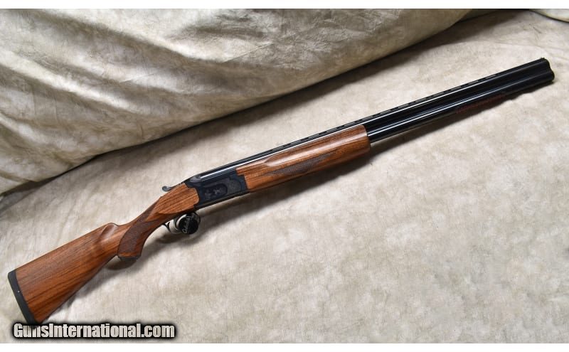 Description: Special buy of factory "blem" guns. This one doesn't show though the engravings might be a little lightly struck. It has deluxe grade wood, semi-beavertail fore arm, appears unfired. 12 Gauge SOLD Chambers: "12 gauge, 3-inch Metal Condition: Excellent. Wood Condition: Excellent. Bore Condition: Shiny and bright. Barrels: 28 inch Triggers: Factory gold single selective trigger. Stock Dimensions: 14-inch LOP. Fore End: Well-matched walnut. Butt Pad: Soft rubber pad. Weight: 7 lb - 5 oz Sights: Ventilated rib with white beads. Chokes: Screw-in Invector-Plus chokes Item Location: Rogers |