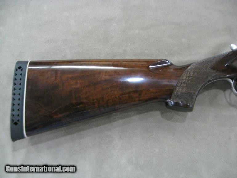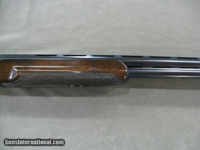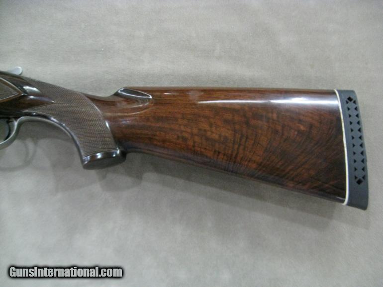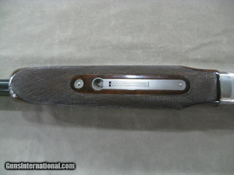 Description: This is a mint condition Winchester Pigeon Grade Model 101 12 Ga Trap Gun with 30 inch barrels, double white bead, wide 11mm Vent Rib, Grade III/IV walnut, beavertail forend, single selective trigger, auto ejectors, etc. Gun has fixed chokes of Full and Improved Modified. This firearm was made in Japan and is not an XTR, but the earlier gun when quality was at its highest. Includes a modified Perazzi type hard case that was customized for this firearm. SOLD |