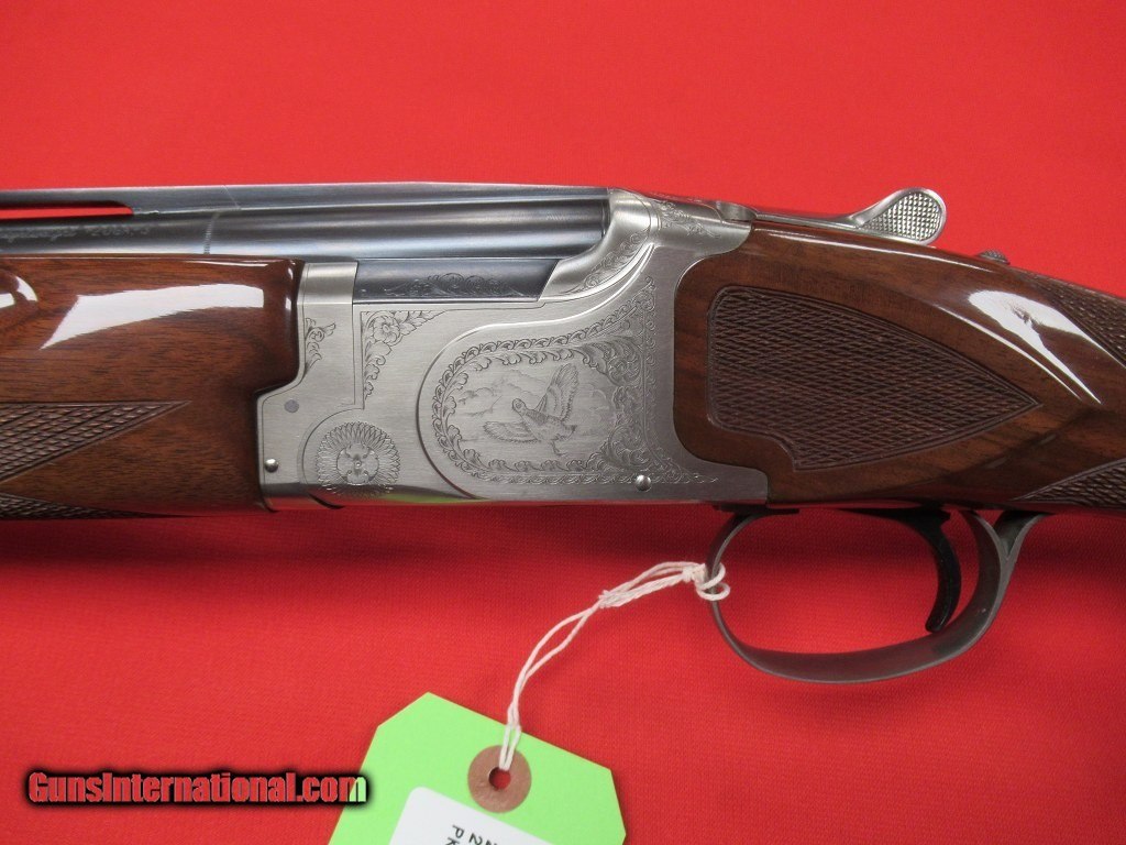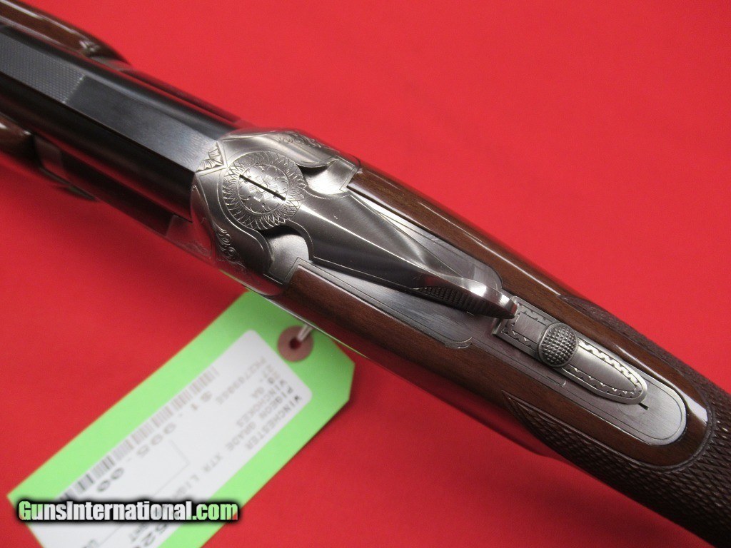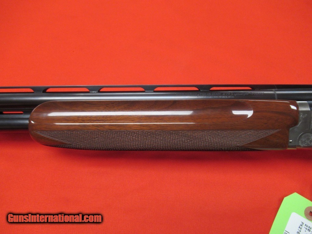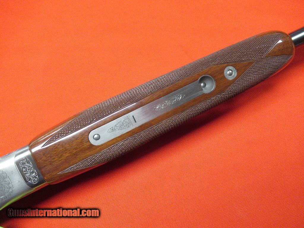 Description: Winchester Model 101 Pigeon Grade XTR Lightweight 20ga/27" Winchokes -- Coin finished receiver with game scene engaving and factory installed Winchokes. This gun is factory original and includes the black leather Winchester hardcase. MINT showing little use. SOLD |