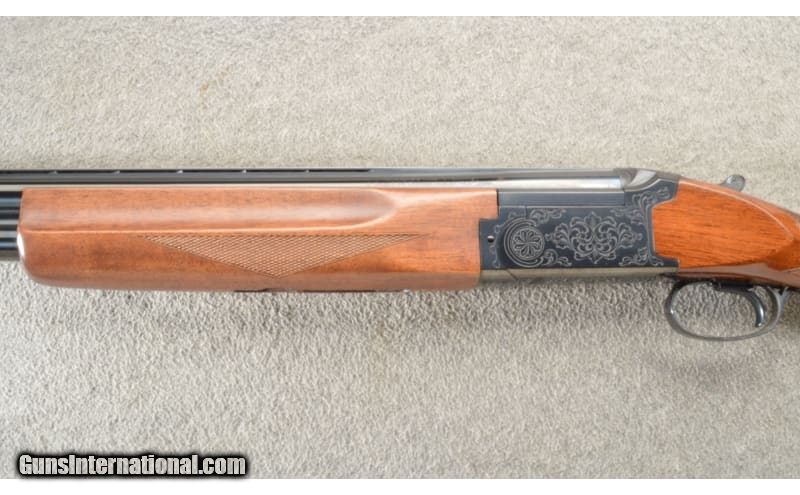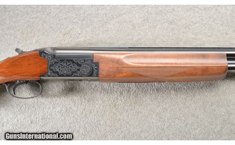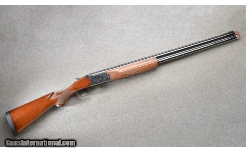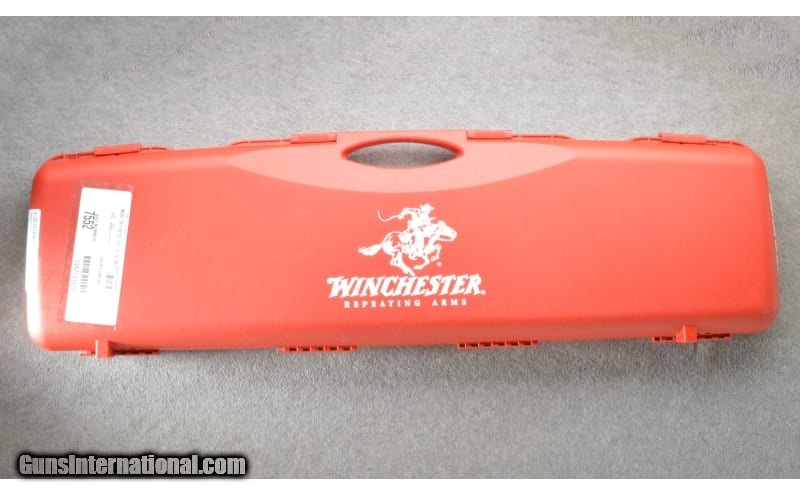 Description: Factory demo Winchester 101 Sporting (Built by FnH) 12 gauge with 30" vent rib barrel and ejectors. The barrels are 2 3/4" chambered with Invector-Plus choke tubes and factory ported. The sights are a fiberoptic tube front with a white bead mid-sight. The action is blued with roll engraving, adjustable trigger shoe for length of pull. The stock is a factory glossy pistol grip stock with grip cap and satin beavertail forearm. This gun does show some light handling marks in stock, overall excellent condition. Includes the factory Winchester hard case, chokes (IM, SK, LF, IC, MOD), choke wrench, owners manual and cable lock. 12 Gauge SOLD Chambers: 2 3/4" chambers. Metal Condition: 95+ with light use and contact surface wear. Wood Condition: Light scattered surface dings in the stock. Mismatched stock and forearm. Bore Condition: Bright smooth bores. Barrels: 30" barrels. Triggers: Single. Stock Dimensions: LOP 14 3/8". Fore End: Beavertail. Butt Pad: Rubber. Sights: "Fiberoptic, bead. Chokes: Removable. Item Location: Owatonna, MN |