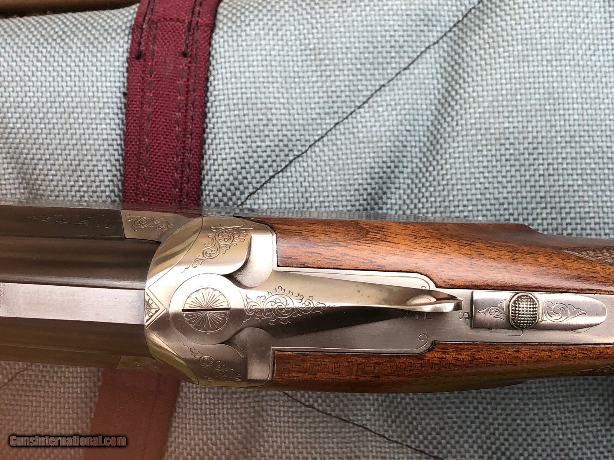 Description: Sold--The Model 5000 was a Japanese made 101 that was made late in the 101’s life span. A sliver receiver with game scenes, along with a nicely configured stock and slim forearm make it a handsome shotgun. This gun is excellent with 28 inch choke tube barrels and a 14 1/2 inch LOP over a factory buttplate. Pleasing wood and shows minimal use. A shotgun bargain at $995 delivered lower 48. SOLD |