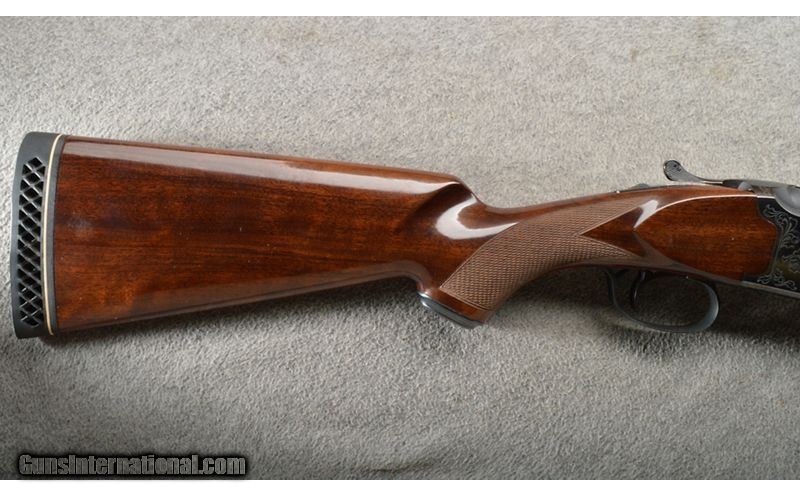 Description: This is a very nice clean Winchester 101 Select model Over/Under shotgun. This shotgun has outstanding gloss blue and great looking walnut. This shotgun is close to new looking and locks up tight with the lever being right of center. 12 Gauge SOLD Chambers: 3" Over/Under with ejectors. Metal Condition: Excellent with no negative issues. Wood Condition: Excellent with 1 scratch. Bore Condition: "Like new, bright and shiny. Barrels: 28" gloss blue with a vent rib. Triggers: Single blue. Stock Dimensions: 14 1/8" LOP. Fore End: "Very nice walnut with checkering, finger grooves and a gloss finish. Butt Pad: White line vented black rubber butt pad. Weight: 7 Lbs even. Sights: Single brass front bead on the vent rib. Chokes: "Screw in, MOD and IC. Item Location: Owatonna, MN |