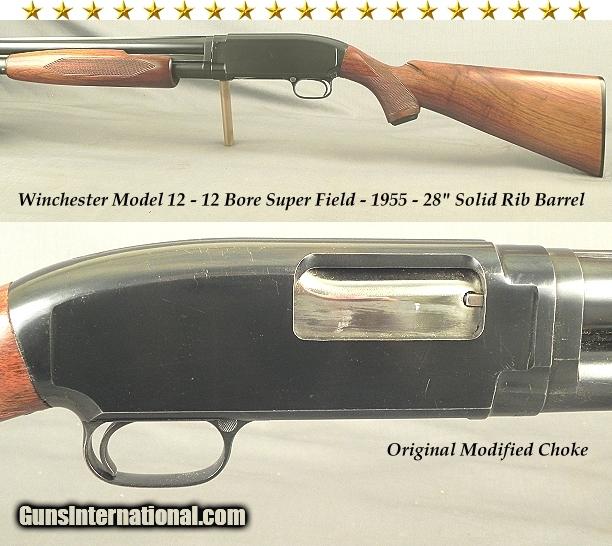 WINCHESTER MOD 12- 12 SUPER FIELD GRADE THAT is in EXC COND- 28" SOLID RIB Bbl. with ORIG MOD. CHOKE- 1955- EXC PLUS BORE- NICE