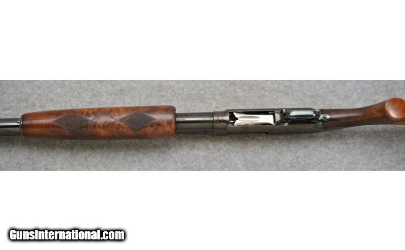Description: Good condition overall with normal handling wear. Has a repaired crack in the right side of the wrist area. SOLD Manufacturer: Circa: 1927 Caliber Info: 12 Gauge Chambers: 2 3/4 Metal Condition: Good Wood Condition: Good Bore Condition: Good Barrels: 30" Winchester Proof Steel with Ventilated Rib Stock: Checkered Deluxe Walnut Pistol Grip Butt Stock with Black Diamond Inlays Stock Dimensions: LOP: 14 1/4 Fore End: Diamond Checkered Walnut Fore Arm Butt Pad: Winchester Recoil Pad Weight: 8 lbs. Sights: Two Beads Chokes: Fixed: Full Item Location: Richfield, WI |