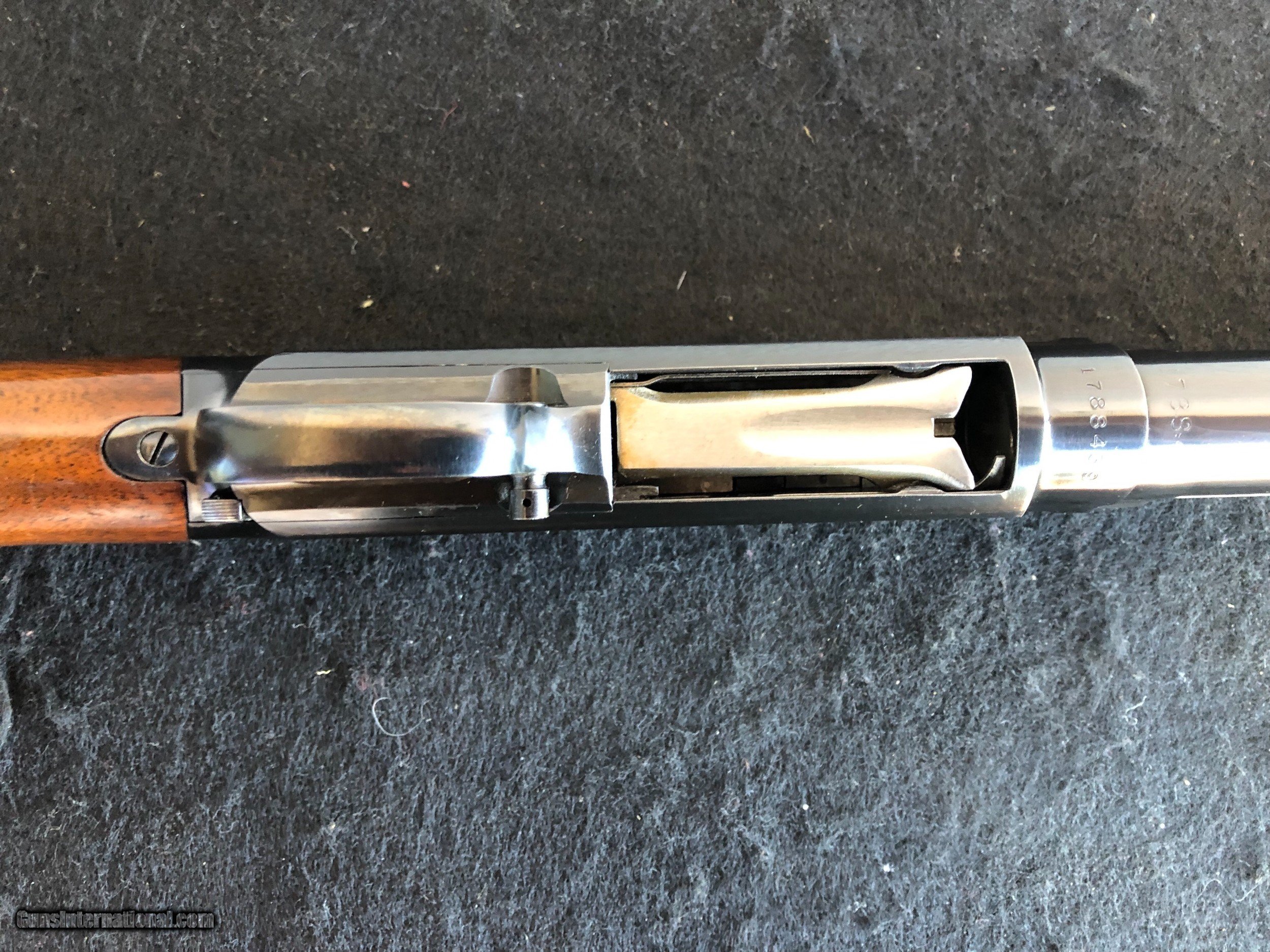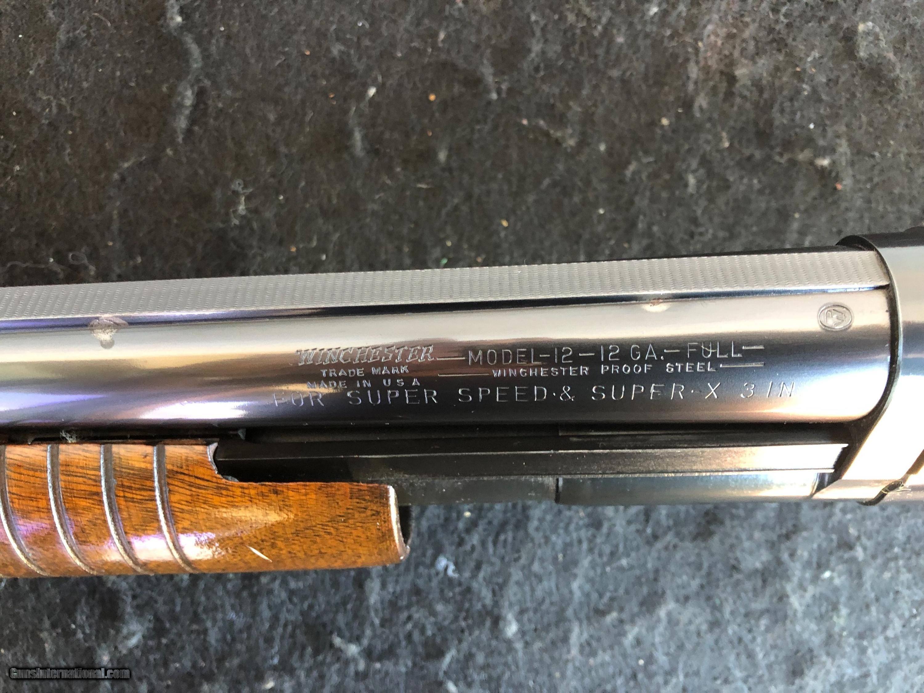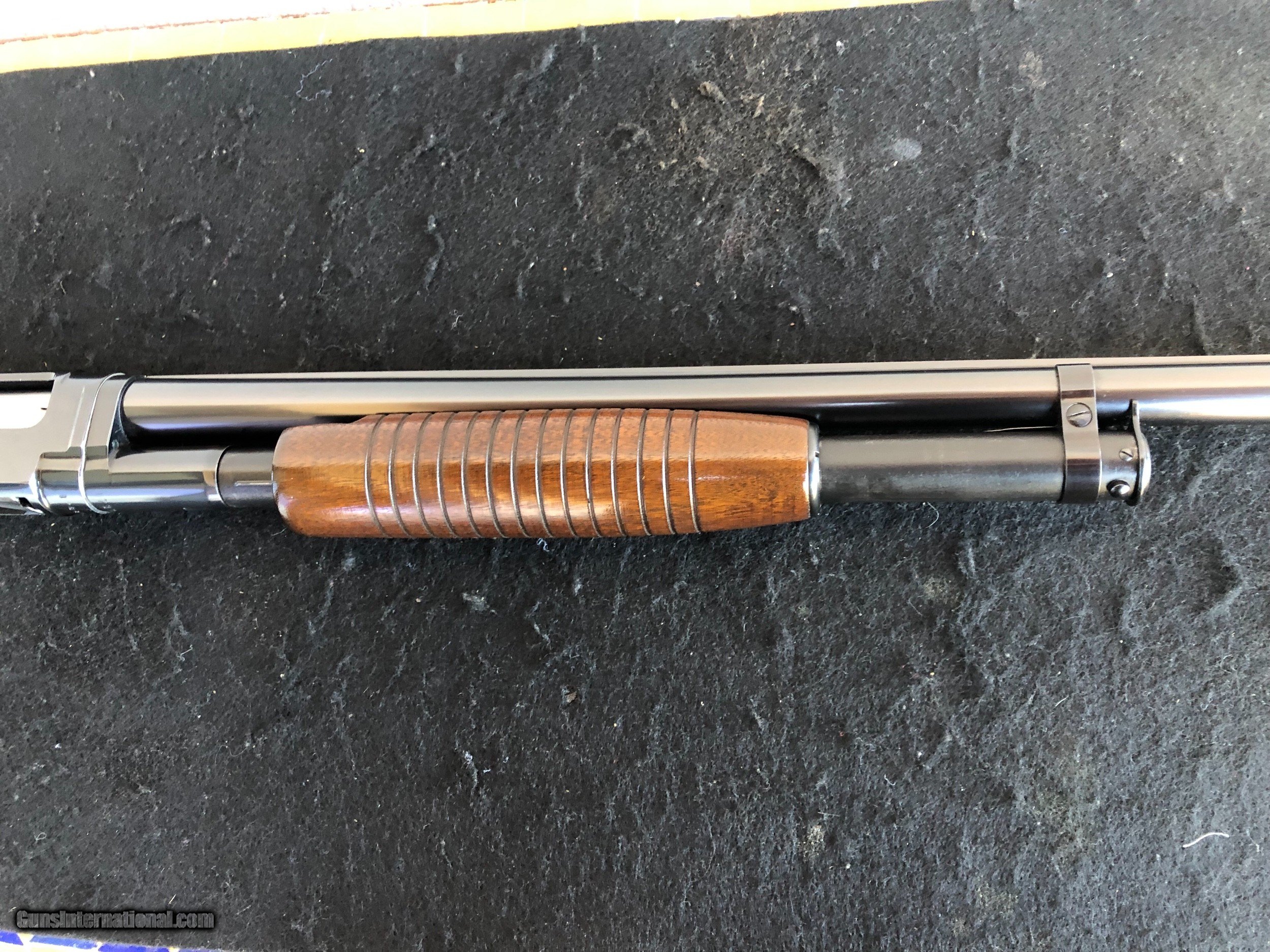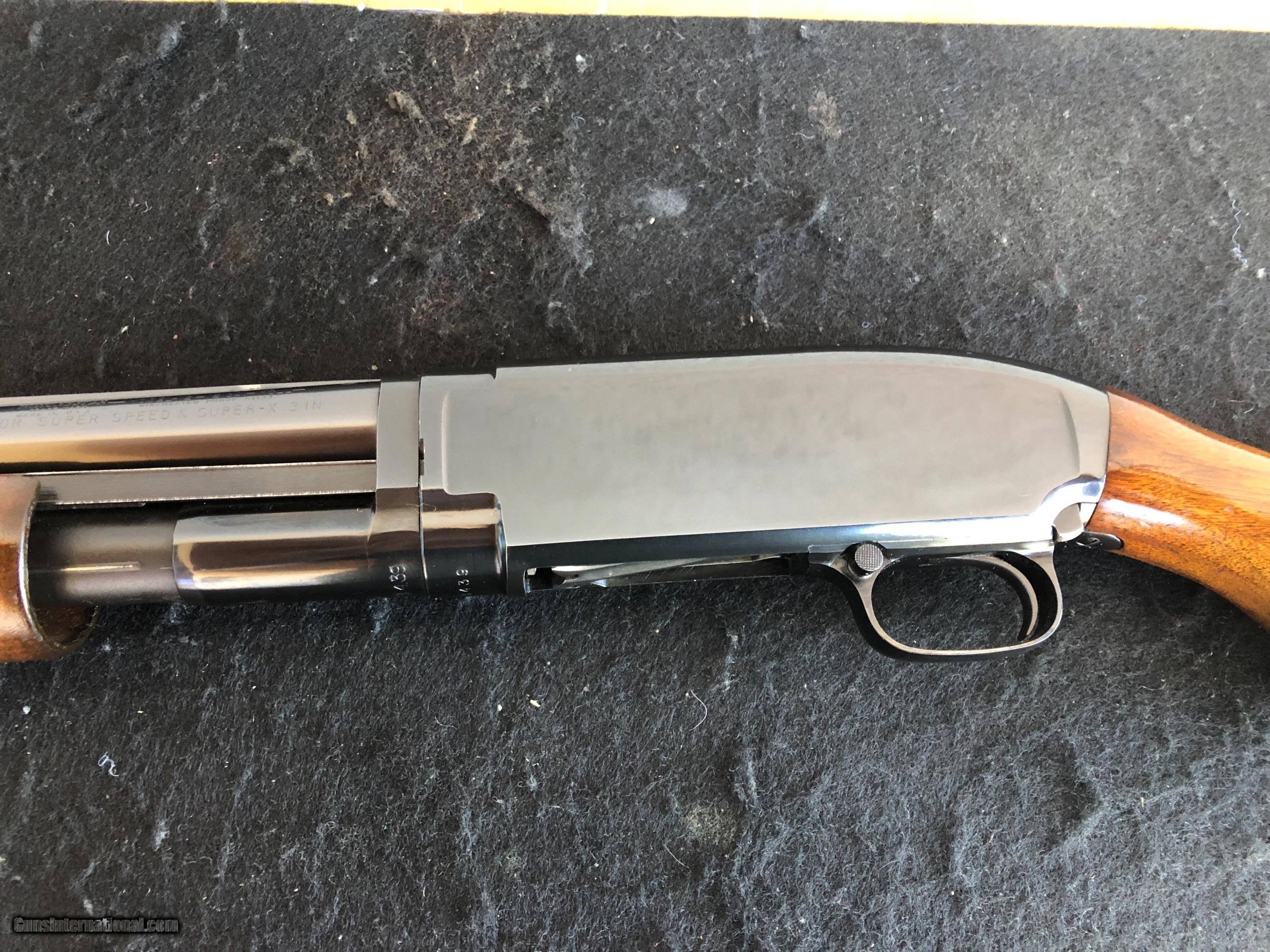 Description: SALE PENDING. Model 12 Solid Rib duck gun, made in 1959 and in superb condition. Apart from two very small spots in rib above rollmark (see photos) and a tiny handling mark here or there, this gun is virtually new and all original. Solid rib barrel is 30", choked full. LOP is 13 7/8" over original Winchester pad. Price includes shipping. SOLD Curio/Relic: Yes |