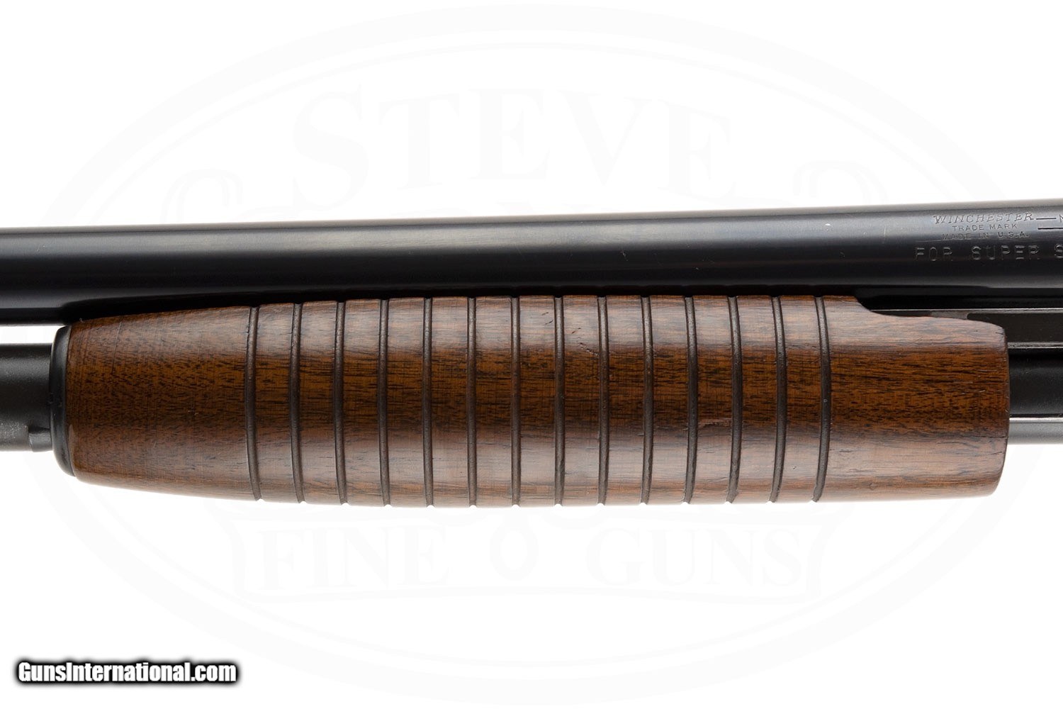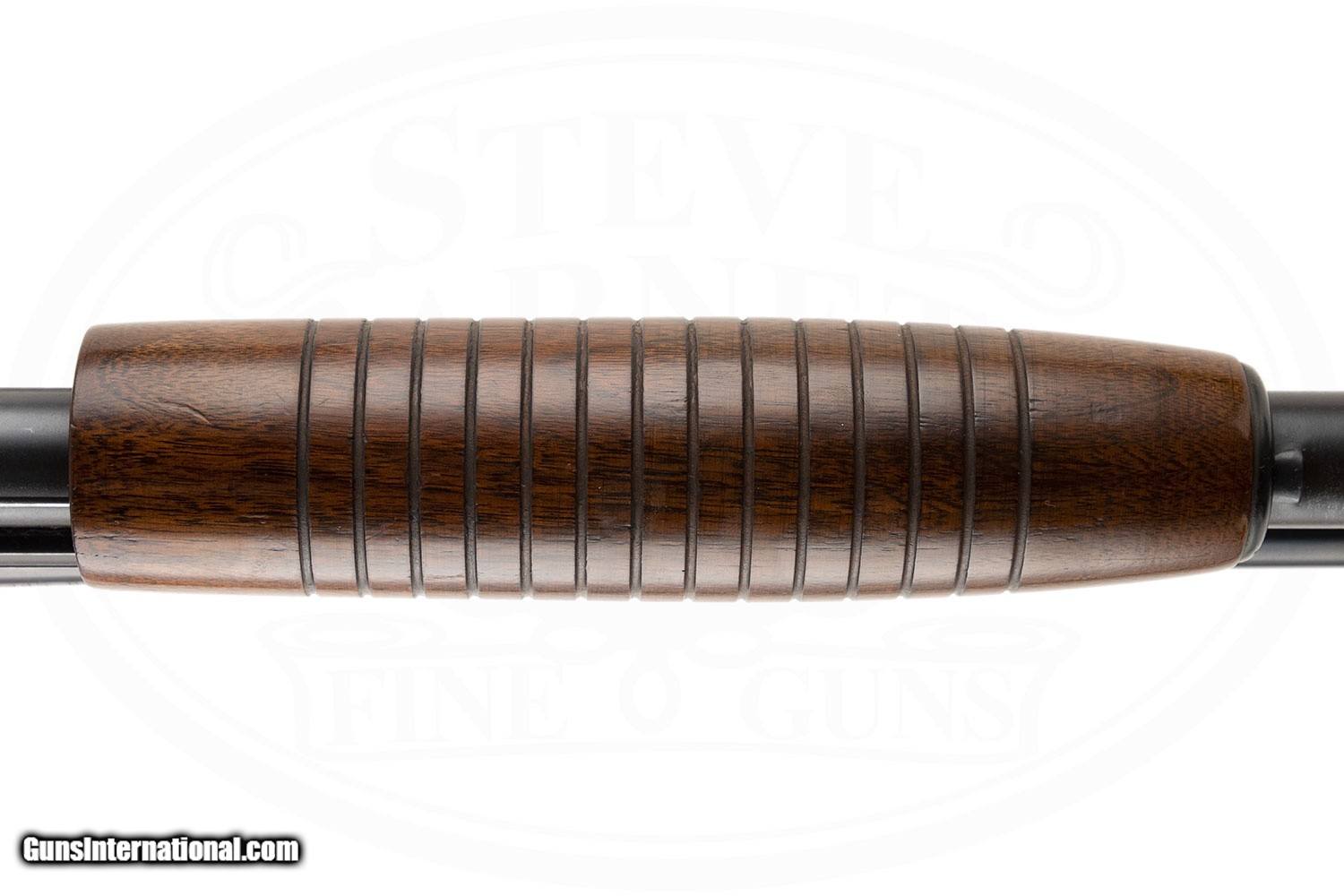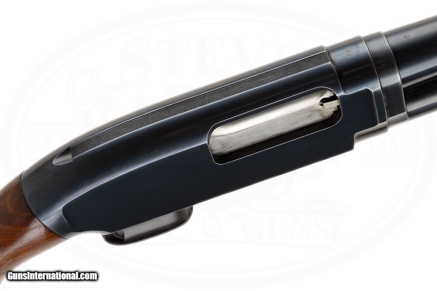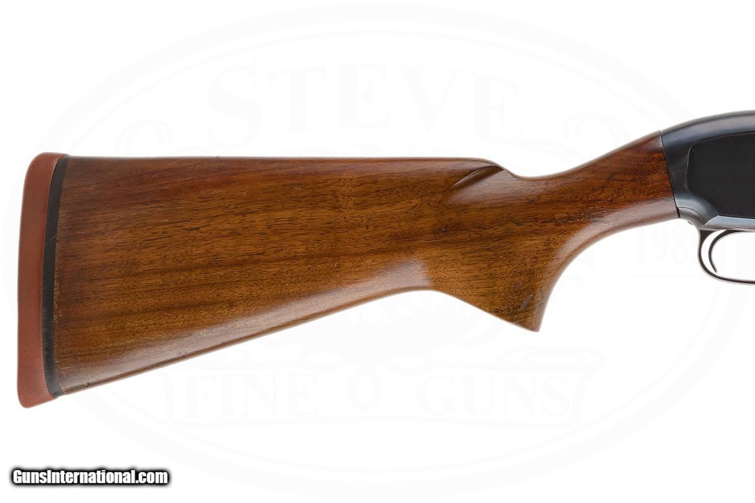 Description: SN# 1913XXX MADE 1963 30" PLAIN BARREL FULL CHOKE (.033 CONSTRICTION) 3" CHAMBER FIELD FOREARM PISTOL GRIP WINCHESTER RECOIL PAD EXCELLENT ORIGINAL FINSIH AND CONDITION SOME VERY LIGHT HANDLING MARKS IN WOOD APPEARS TO HAVE BEEN USED VERY LITTLE SLIGHT BLUE WEAR ALONG EDGE OF RECEIVER 8LBS 12 OZ 13 3/4" LOP SOLD |