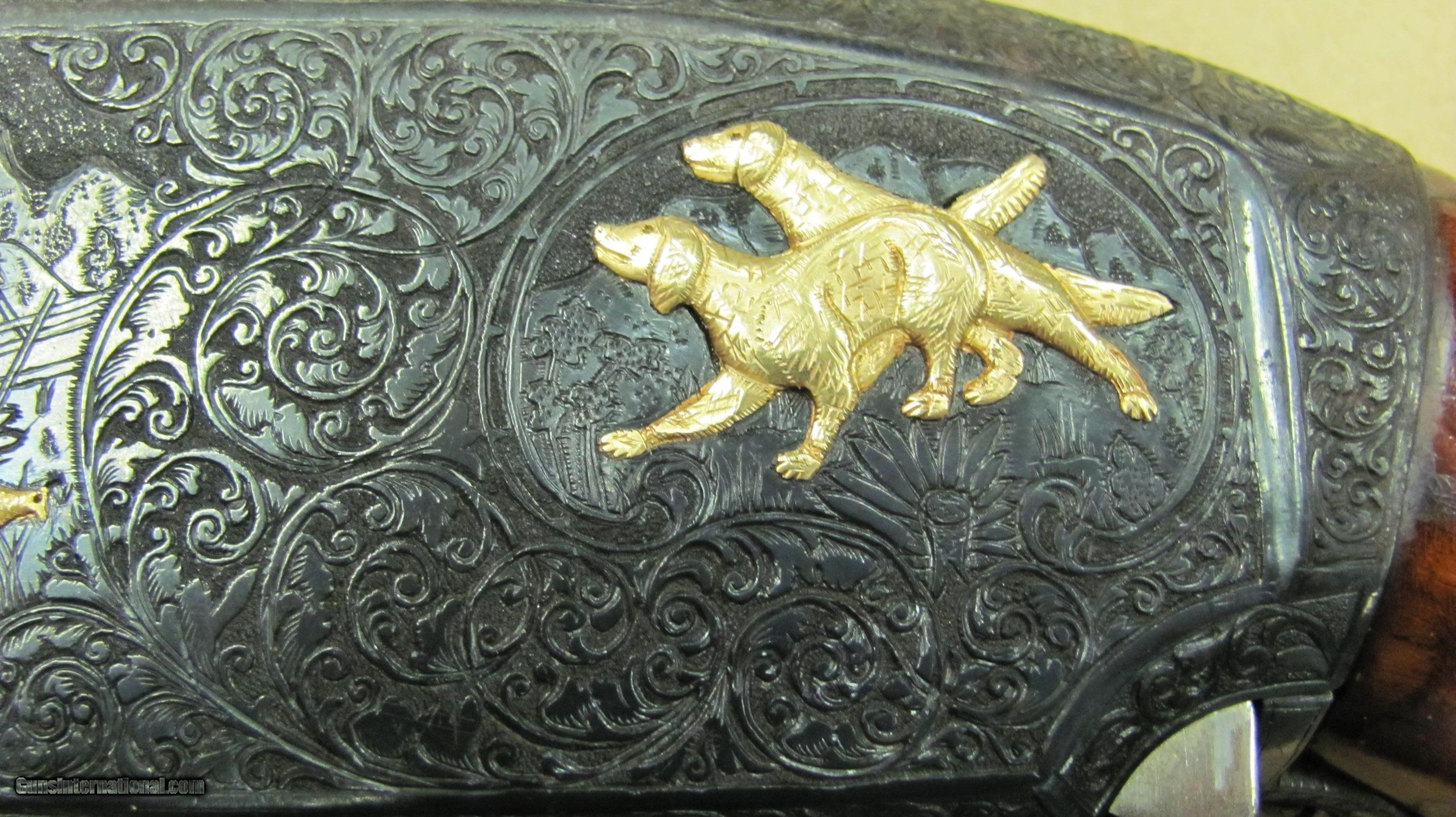Custom engraved and gold inlays on Winchester Model 12 Pigeon Grade 12 Gauge