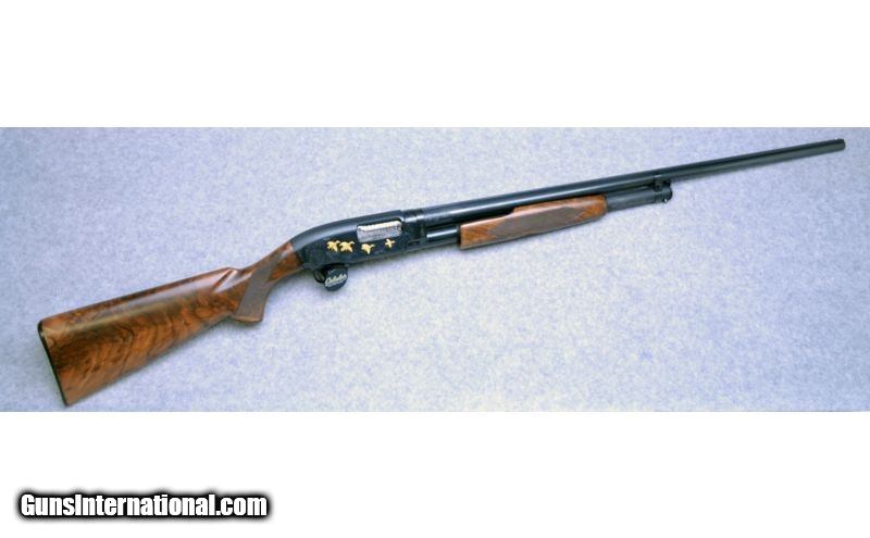 Description: Custom Model 12, Grade V Gold Engraved Pigeon Grade Representation. SOLD Caliber Info: 28 Gauge Chambers: 2 7/8 Metal Condition: Excellent Wood Condition: Excellent Bore Condition: Excellent Barrels: 28 Stock: Grade V checkered walnut Stock Dimensions: 14 1/8" LOP Fore End: Grade V checkered walnut Butt Pad: Black synthetic with Winchester logo Sights: Front and mid bead on solid rib Chokes: Full Item Location: Richfield, WI |