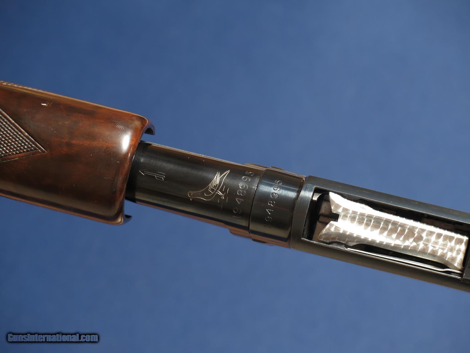 Description: ****SOLD**** Winchester model 12 Pigeon grade 12ga. 1963 mfg. 30 inch barrel. Factory duckbill 3 pin vent rib. Full choke. 14 3/8 LOP Winchester recoil pad. Original finish. Excellent condition. SOLD Curio/Relic: Yes Shotgun Gauge: 12 Gauge |