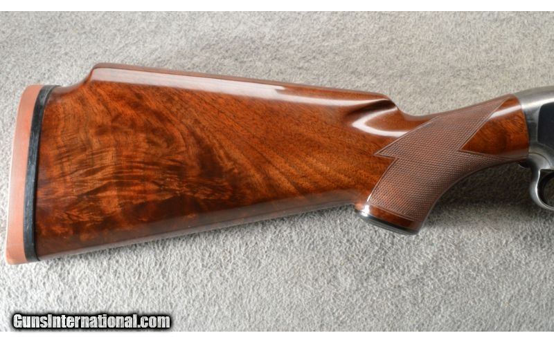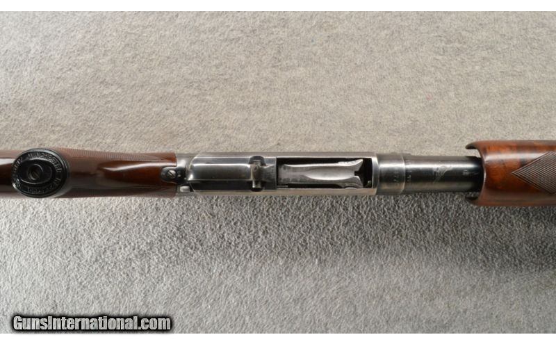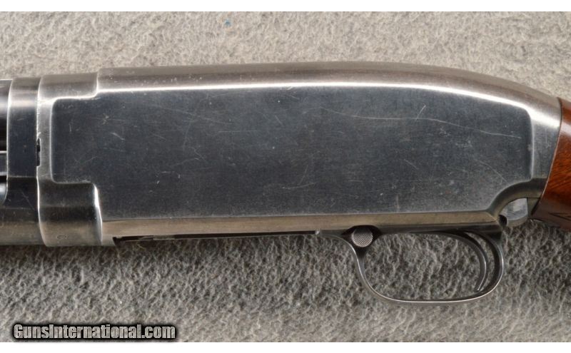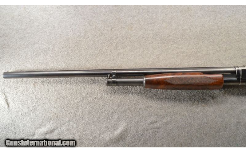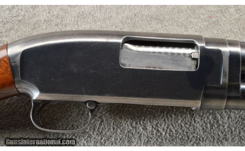 Description: This is a very nice used Winchester Model 12 Pigeon Trap 12 gauge shotgun that was made in 1949. The shotgun has a 30 inch blue barrel with a solid rib, fixed FULL choke and a Pigeon engraved on the bottom of the mag tube. The receiver is blue with a jeweled bolt and shell carrier. The blue is thinning but still very good. The checkered walnut stock has high grade wood and a high trap comb and checkered pistol grip. The forearm is a checkered trap style with matching walnut. This is a very nice shotgun with what looks to be original metal and refinished wood. SOLD Manufacturer: 1949 Caliber Info: 12 Gauge. Chambers: 2 3/4 inch pump action repeater. Metal Condition: Very good with thinning blue. Wood Condition: Excellent, looks to have been cleaned up and finish added. Bore Condition: Bright and shiny. Barrels: 30 inch blue with a solid rib. Triggers: Single blue. Stock: Very nice high grade walnut with a trap comb and a checkered pistol grip. Stock Dimensions: 13 3/4 inch LOP. Fore End: Matching checkered walnut. Butt Pad: Winchester red rubber butt pad. Weight: 8 Lbs. 6 Oz. Sights: Mid and front beads on the solid rib. Chokes: Fixed FULL. Item Location: Owatonna, MN |