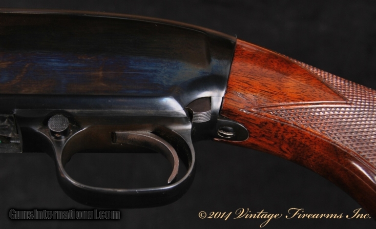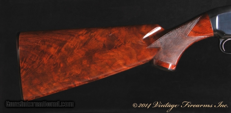 Description: Winchester Model 12 28 Gauge Pump Shotgun RARE PIGEON GRADE, FACTORY MINT General Specs: Winchester, Year 1955, 28 Gauge, Pump Single Barrel Serial Number: 1514809 Winchester collectors take note---we have acquired a collection of 5 Model 12 Pigeon Grade small bores, 4 20 gauge guns and one very rare 28ga. gun, all factory original, all proper with no flaws or question marks. One 20ga. has B Carved wood, one has A Carved wood, all have ribs. This is a rare find and these guns will not last long, so don't hesitate on these treasures. This particular gun, sn1514809 built in 1955, is one of the most difficult Model 12's to find. So few true 28ga. M12's exist, with most being faked and upgraded from 20ga. guns. Outfitted with 26" barrel choked Modified, proper donut post vent rib, mirror bores, no marks or damage anywhere, 99% factory blue throughout, jeweled action, gorgeous XXX Pigeon Grade wood with near perfect finish and checkering and 14 1/8" LOP to factory butt plate, no cracks or repairs, finest workmanship throughout, untouched FACTORY ORIGINAL IN ALL WAYS. We have photos of the stock tang that demonstrate the gun to be the real deal. THE RARITY OF THIS GUN MAKES IT A SUPERB INVESTMENT GRADE, WINCHESTER COLLECTOR'S TREASURE. We have this gun priced to sell, so don't hesitate. Barrels Barrel Length: 26" vent rib donut post Chokes: mod % Blue: 99% Chambers: 2 3/4" Ribs: donut post vent rib Action Action: jeweled Case Color: 99% Stock Type: capped pistol grip/double diamond LOP: 14 1/8" LOP To End Of Wood: 13 3/4" Checkering Condition: excellent Butt Treatment: plate There are more photos upon request. We offer a 30 day mechanical warranty on this fine shotgun. PLEASE SEE MY OTHER FINE VINTAGE FIREARMS. Just open one of my ads and click on the line that says “see all items from this seller” and a very nice list of fine sporting and collectible arms will appear. I have many more fine sxs shotguns not yet listed. Thanks for looking! Join us at the ANTIQUE ARMS SHOW at the Riviera Hotel in Las Vegas, January 23-25, 2015! We employ a full time gunsmith on premises and can perform alterations to suit your needs within a few weeks of purchase. Payment Methods: Money Order, Certified Check, Personal Check, Wire Transfer Inspection Period / Return Policy: Three Days from the date the item was received. Sales Tax: 6% Michigan Only Shipping & Insurance: Ground $110.00 We ship internationally! Item Condition: Used Requires FFL?: Yes If you have any questions about this item or payment, please email me or call us directly, at #616-292-6240. Thanks! Vintage Firearms, Inc SOLD Curio/Relic: Yes |