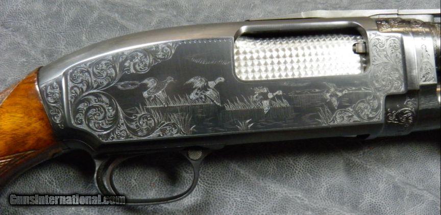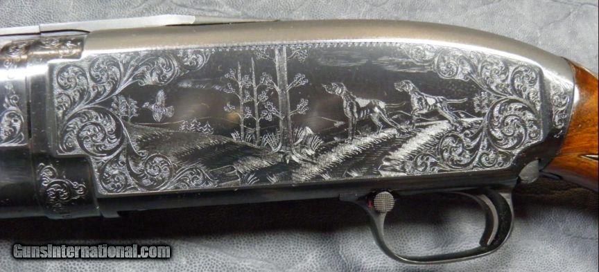 Description: WINCHESTER MODEL 12 GRADE 5 ENGRAVED TRAP GUN IN 12 GA., MADE IN 1958. IS SIGNED BY NICK KUSMITS. EXCELLENT CONDITION PIGEON GRADE GUN WITH 2 PIN DUCK BILL RIB. SOLD |