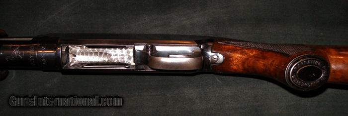 Description: WINCHESTER MODEL 12 PIGEON GRADE 12GA SHOTGUN, 1955 MFG DATE, 30" BBL, 2 3/4, FULL CHOKES, FACTORY 2 PIN VENT RIB, EJECTORS, SINGLE TRIGGER, GORGEOUS FESTHERCROTCH WALNUT, PISTOL GRIP, LOP 14 1/4, 1 1/2, 2 1/2, 8LBS 8OZ, EXCELLENT WOOD & BLUE, 97% ORIGINAL, JUST SLIGHT EDGE WEAR ! SOLD Manufacturer: WINCHESTER Model: MODEL 12 PIGEON GRADE Chambers: 2 3/4 Ejectors: YES Condition: 97% Barrels: 30 Triggers: SINGLE Gauge Info: 12GA Stock: BEAUTIFUL FEATHERCROTCH WALNUT Fore End: PISTOL GRIP LOP: LOP 14 1/4, 1 1/2, 2 1/2 Rib: FACTROY 2 PIN VENT RIB Weight: 8LBS 8OZ Item Location: SALT POINT, NY 12578, SAFARI OUTFITTERS LTD. |