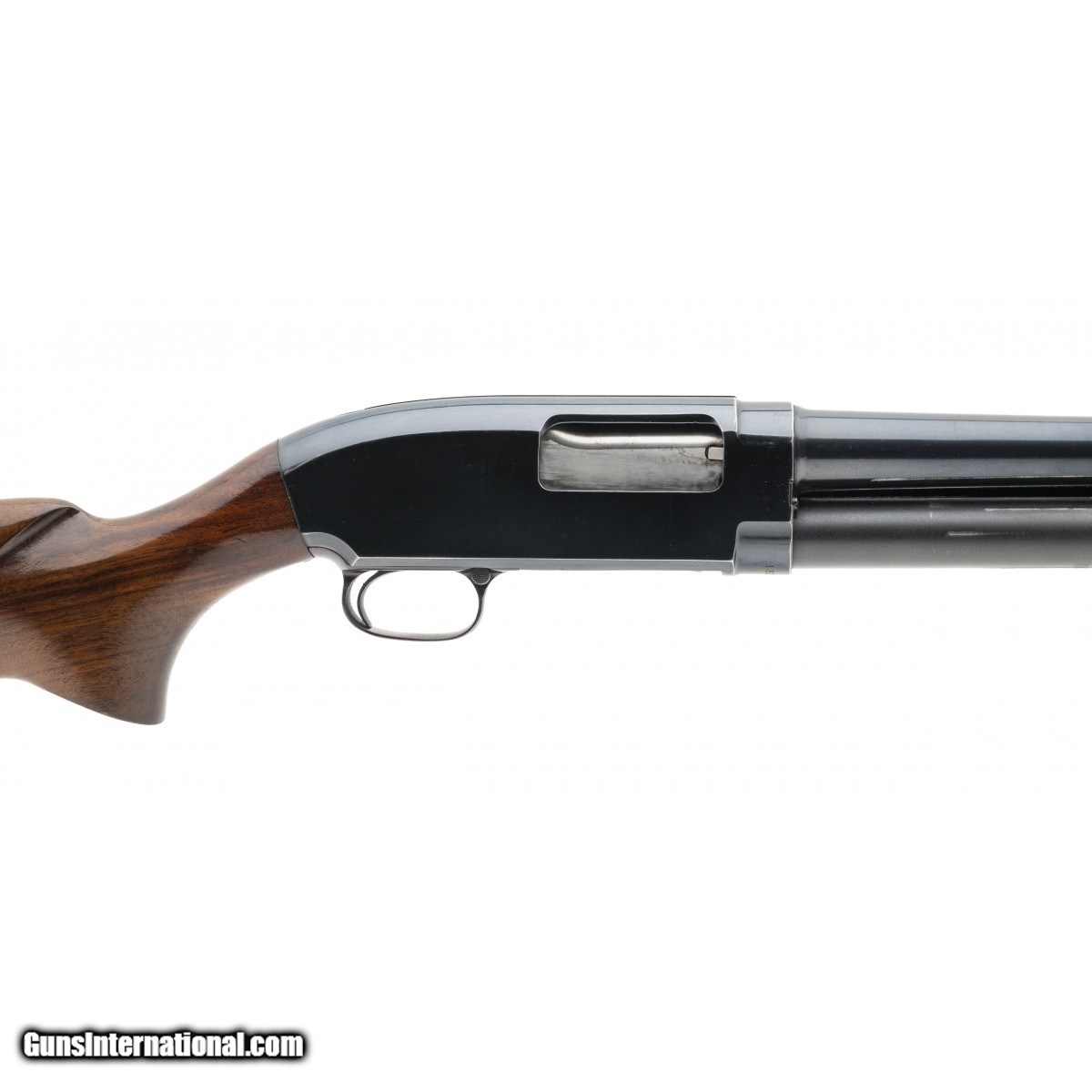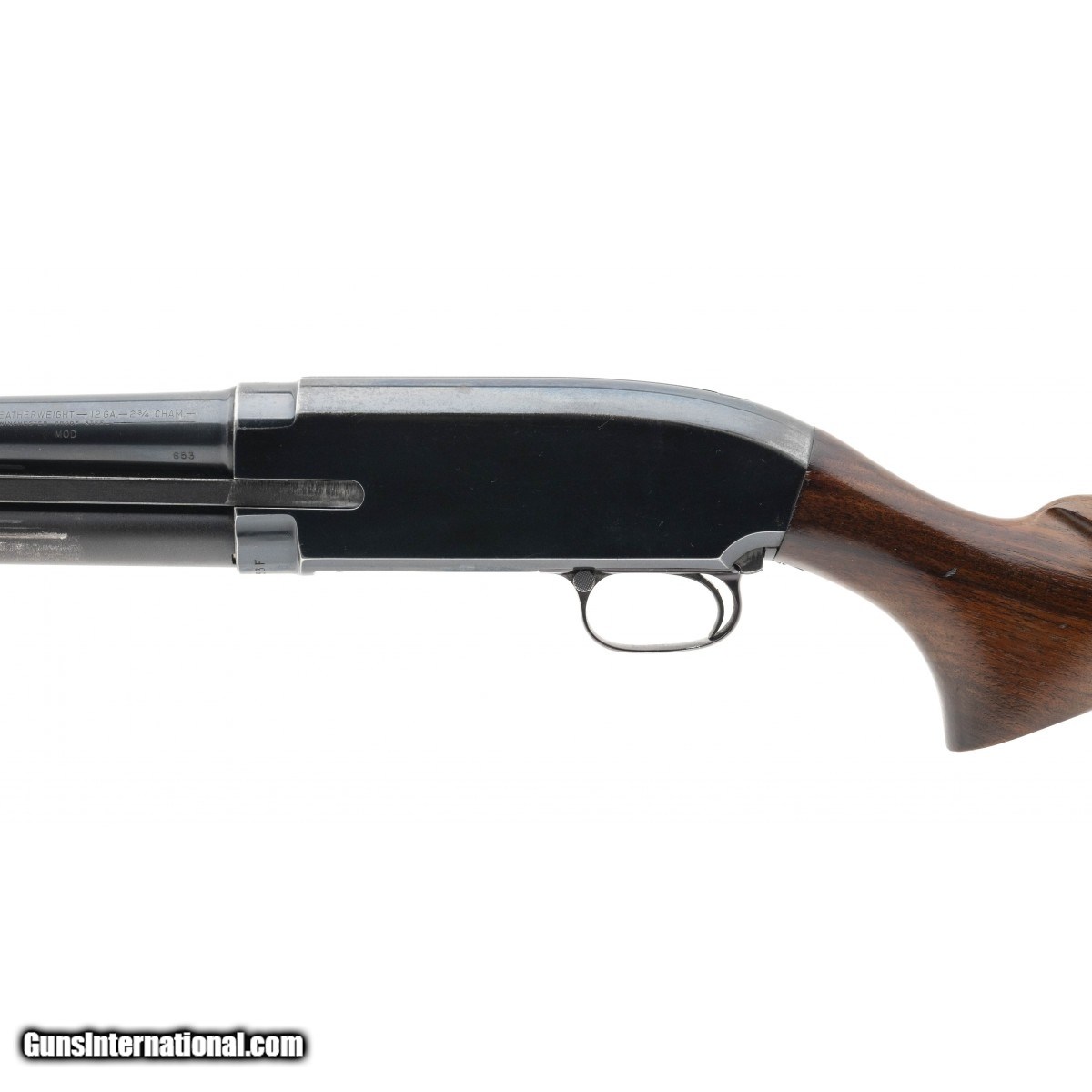 Description: " SN: 1813653F. Manufactured circa 1958. 12 gauge with a 28"" barrel, bore is excellent. Pump shotgun with modified choked barrel, 2.75"" chamber, bead front sight and walnut furniture. Overall very good condition. SOLD |