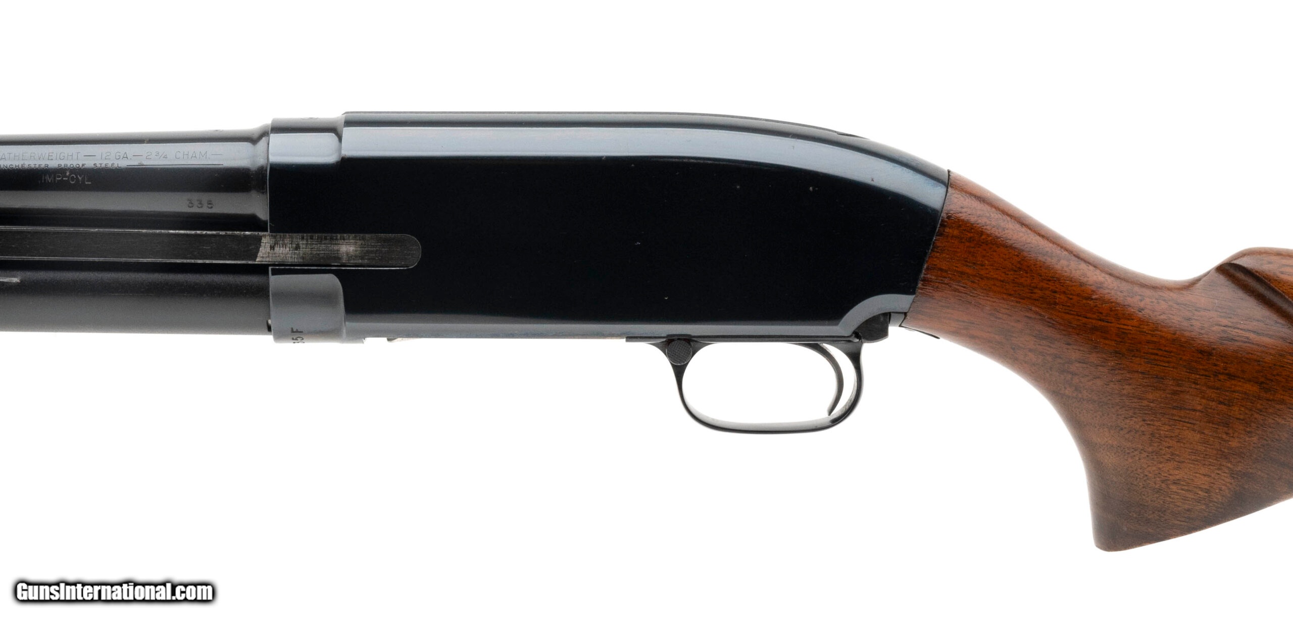 Description: "SN: 1834335F. Made in 1961, 12ga with a 26"" barrel choked Imp Cyl. Scarce Featherweight pump gun, made from 1959 to 1962 only. The metal is excellent, the stock has a few marks. Overall near excellent condition. SOLD Curio/Relic: Yes |