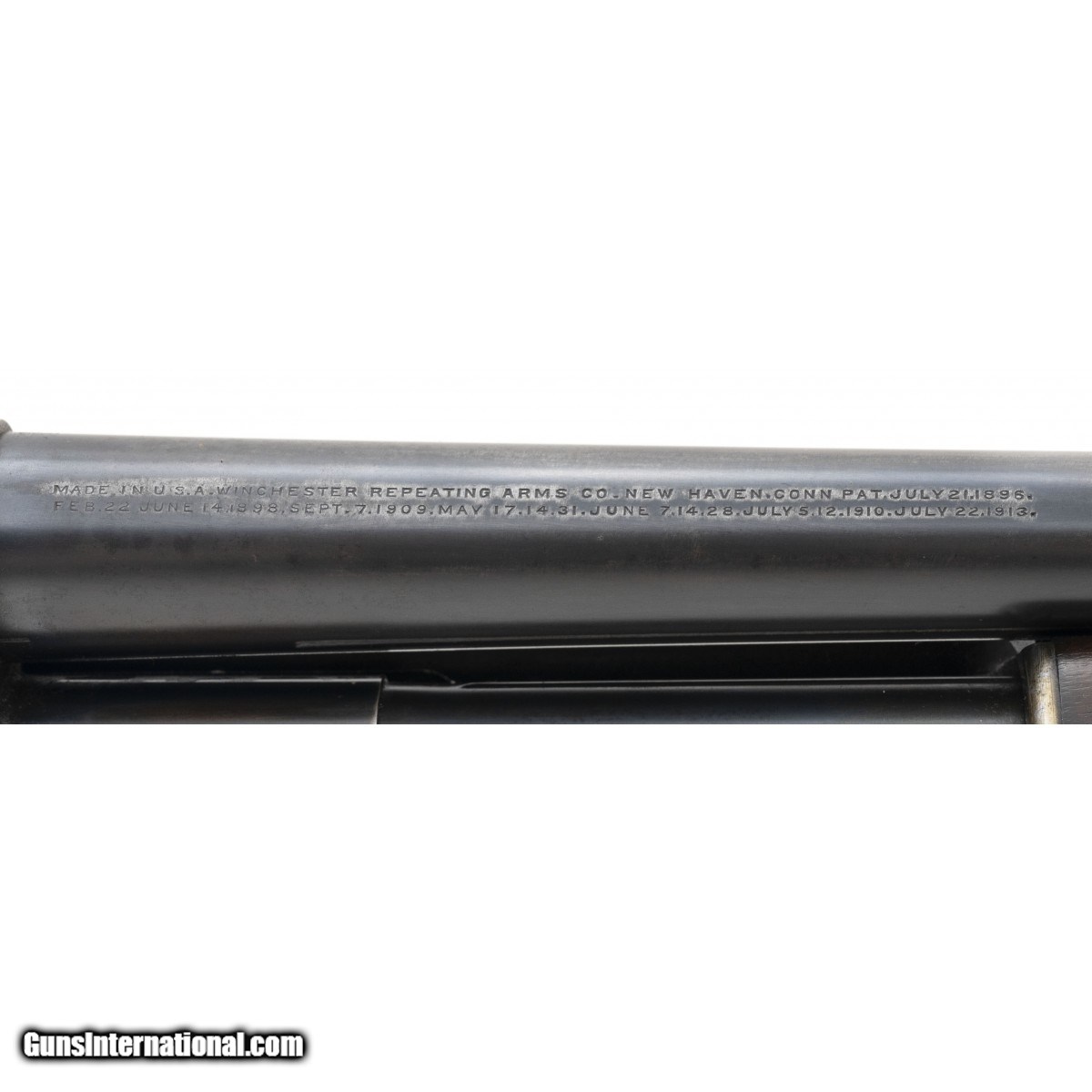 SN: 505700. Pre-WWII pump action Winchester made in 1927 with 28"" barrel, choked Full and chambered for 2 3/4"" shells. The LOP is 13.5"" shells. The stock has been sanded and lightly varnished. Overall very good condition.
