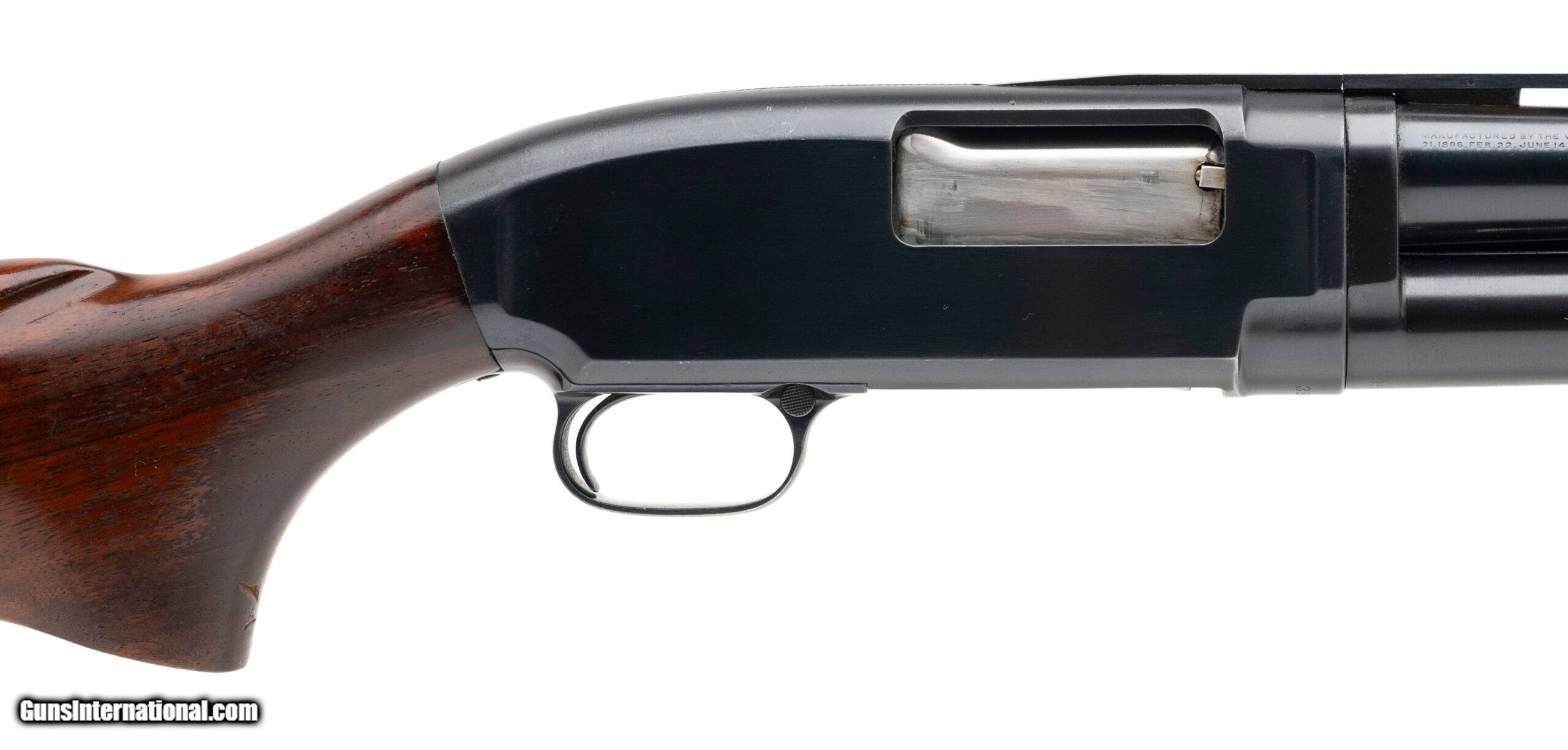 Description: "SN: 355820. Made in 1924, 12 gauge takedown pump action shotgun with a 30"" barrel, added Simmons vent rib, 2 1/2"" chamber and fixed full choke. Bore is very good. Pump-action field shotgun with blued finish, and wood stock & forend with a 14"" LOP. Finish has been re-blued with minor handling marks, and stock shows minor field wear. Overall condition is very good. Curio/Relic: Yes Price: $349.95 Contact Seller |