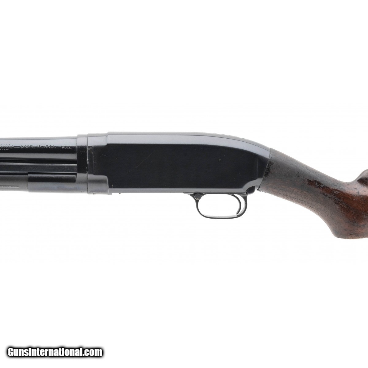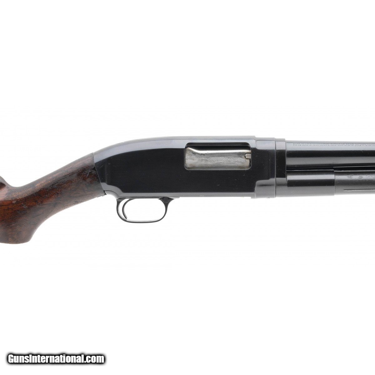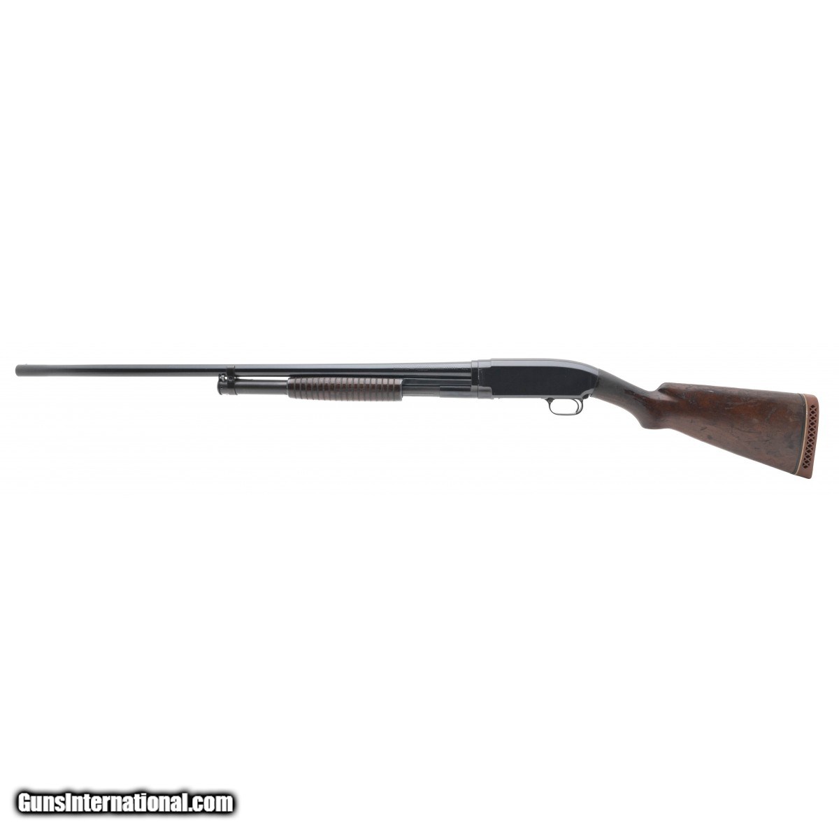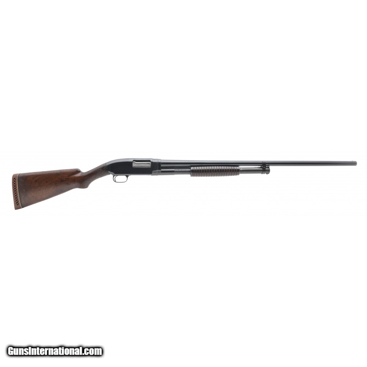 SN: 466513. Manufactured circa 1926. 12 gauge with a 30"" barrel, bore is excellent. Pre WWII pump action shotgun with blued finish, full choked barrel and walnut stock. Gun has been expertly refinished. Overall very good condition with light wear on stock.