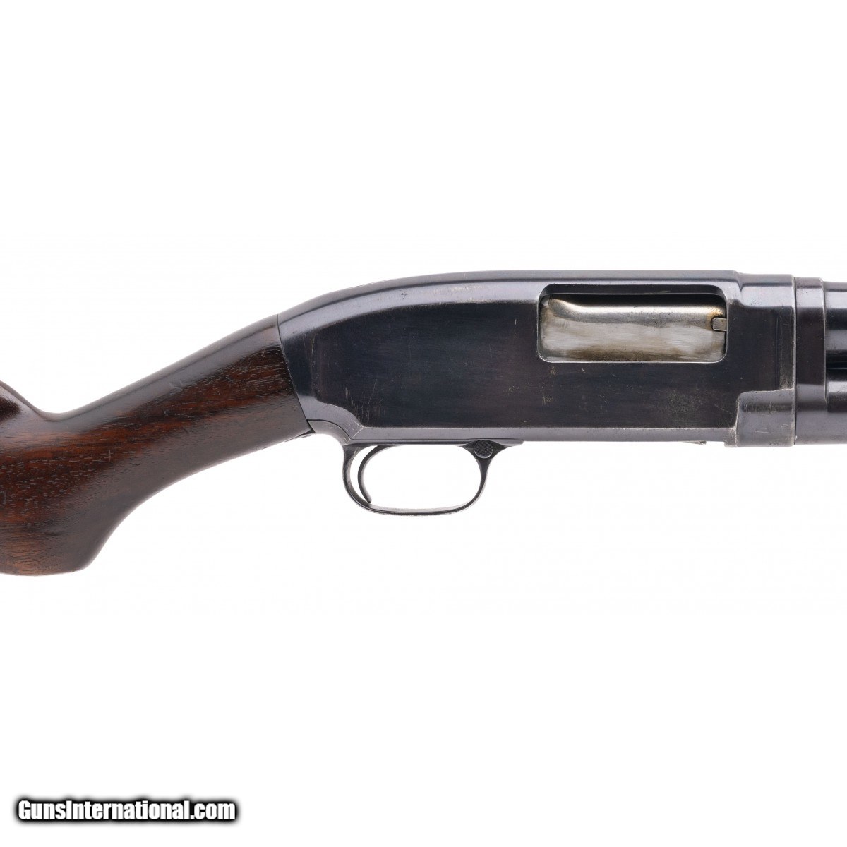 SN: 514003. Made in 1927. 12 Gauge with a full choked 32"" barrel. Bore is very good and bright. Pump action Winchester field gun. Finish is in good condition with areas beginning to thin and transition to a brown patina, shotgun has been reblued. Stock is in good condition with handling wear noted and a butt pad has been added. LOP is 14"". Action functions properly. Overall good condition.