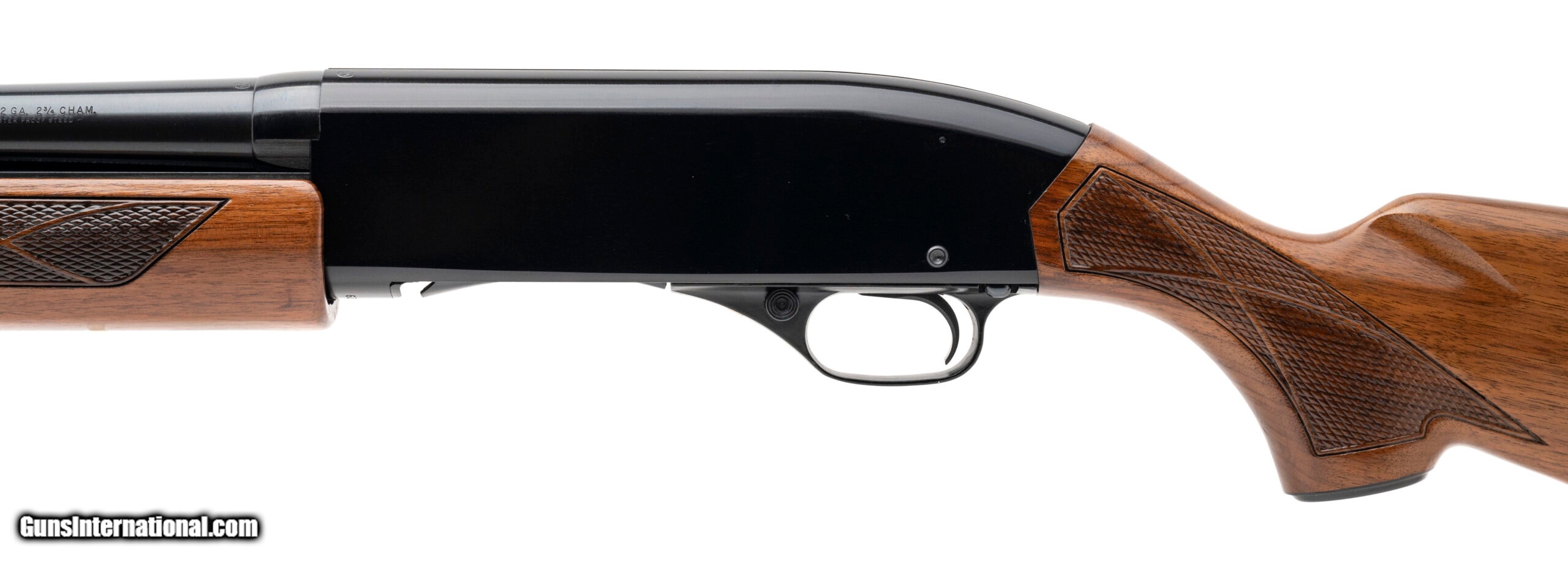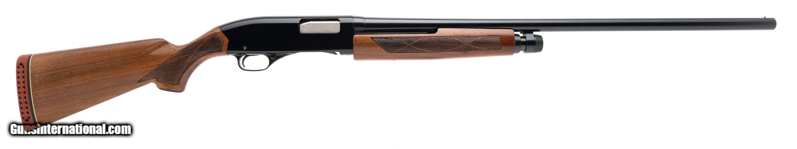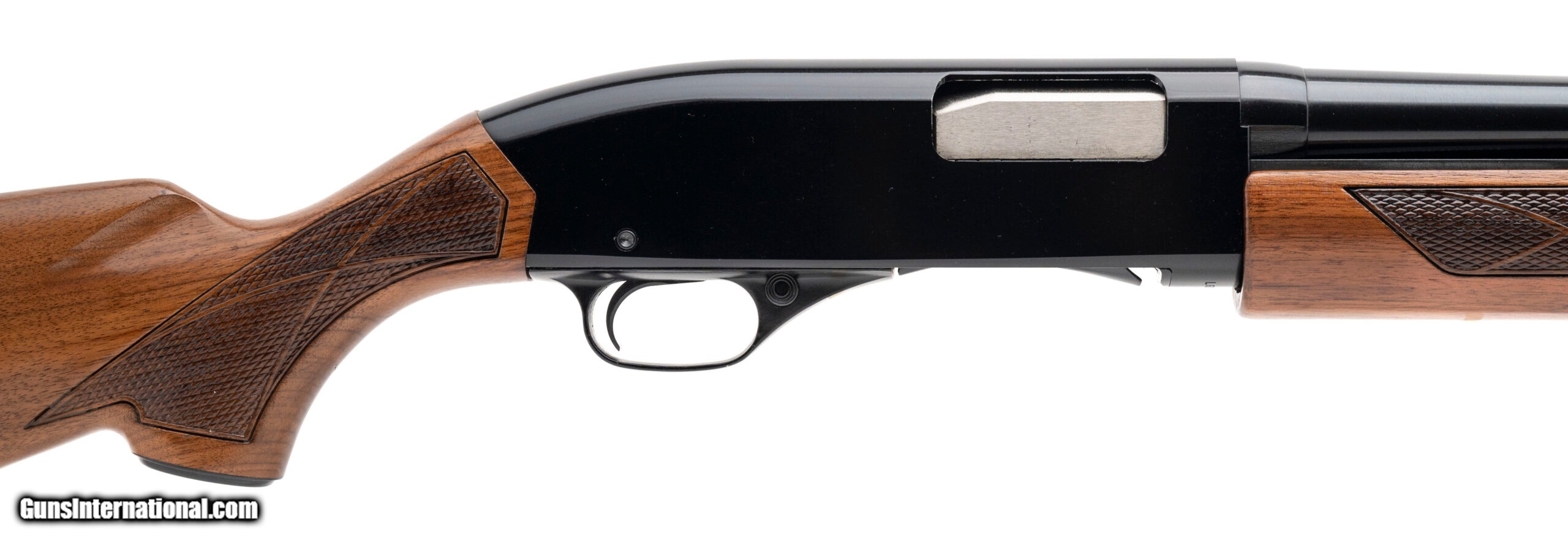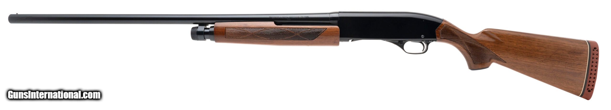Description: "SN: L608729. Made circa early 1970s, 12 GA with a 28"" full choked barrel. Bore is in very good condition. Pump action shotgun with beaded front sight. Original blued finish and checkered wood stock are in very good condition. SOLD |