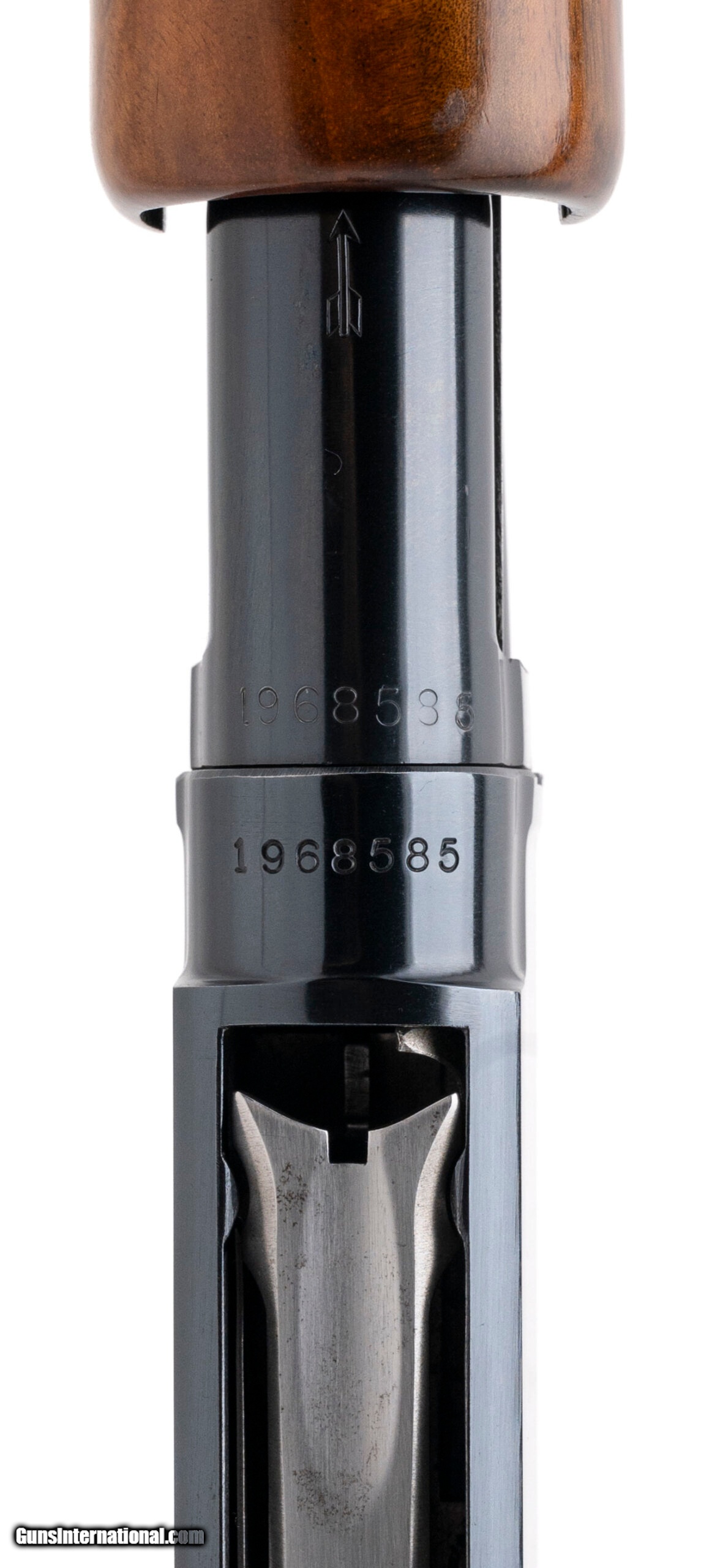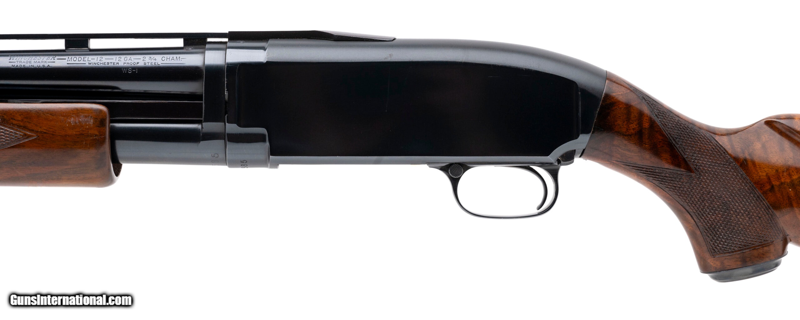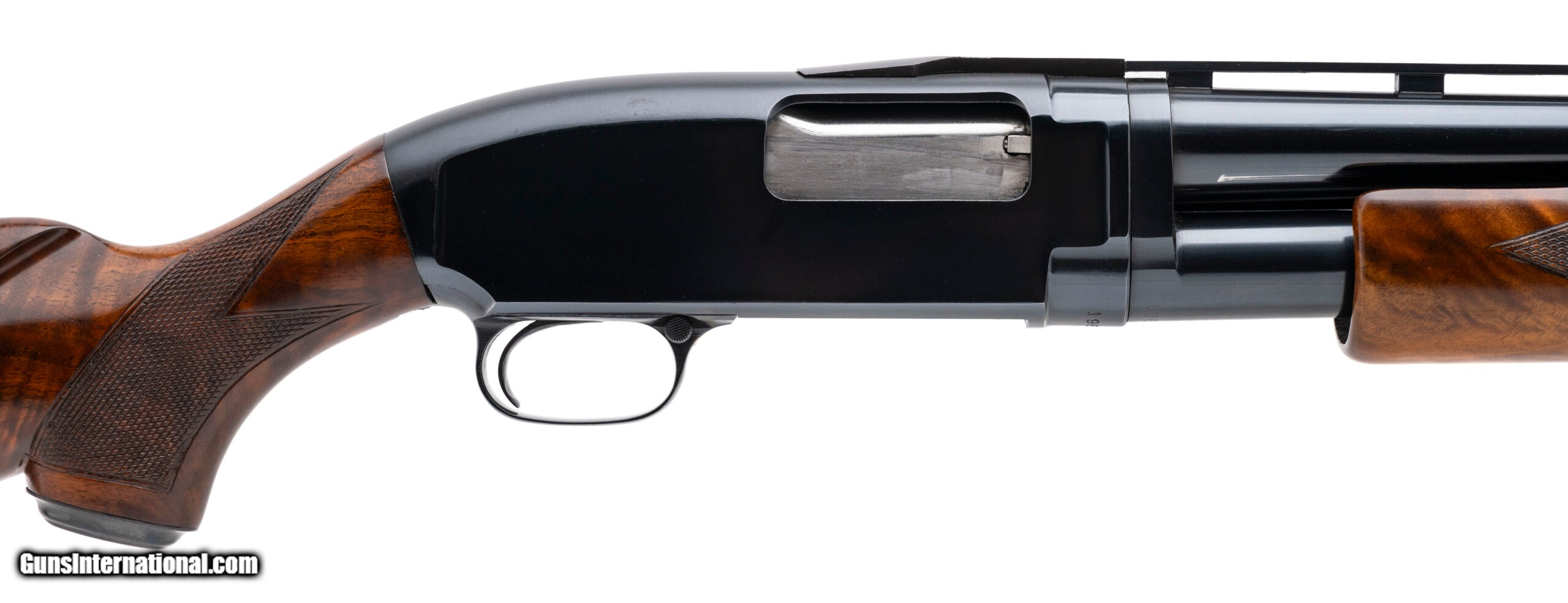 Description: "SN: 1968585. Made in 1964. 12 Gauge with a 26"" vent rib barrel choked to Cylinder. Bore is in excellent condition. Winchester pump action Skeet gun. The barrel has been cut to 26"" and has no choke, but is marked WS-1. The metal is excellent, as is the deluxe checkered stock. LOP is 13.75"" with a Winchester pad. Overall condition is excellent. A great looking gun, ready for the range or field. SOLD |