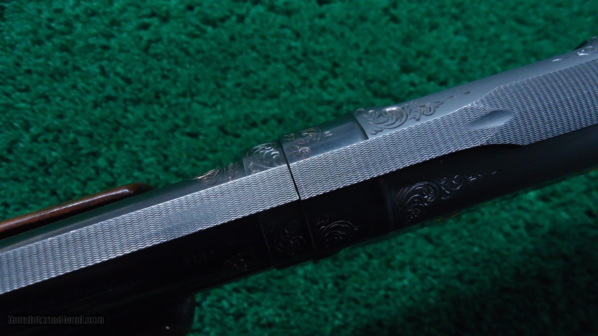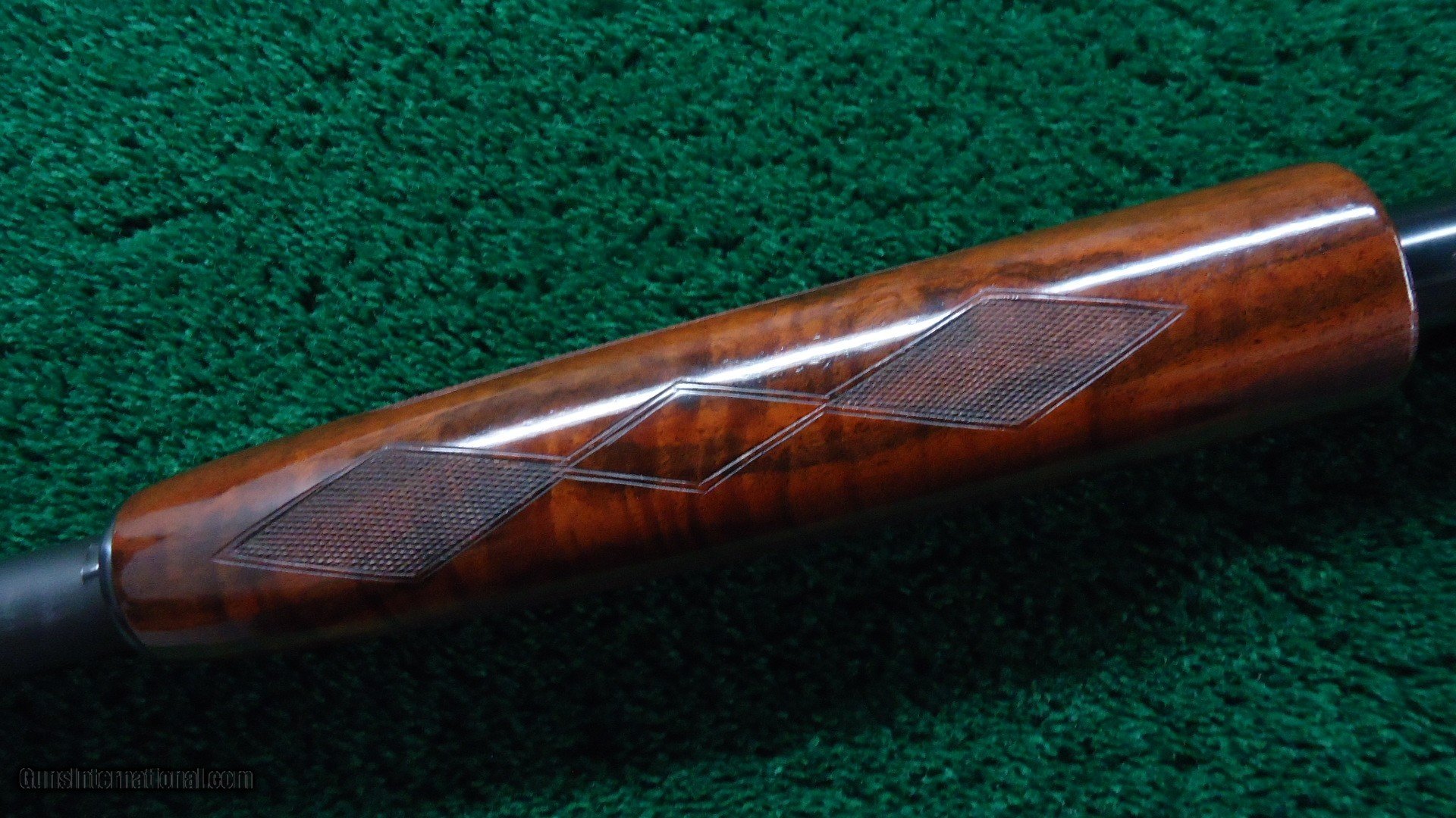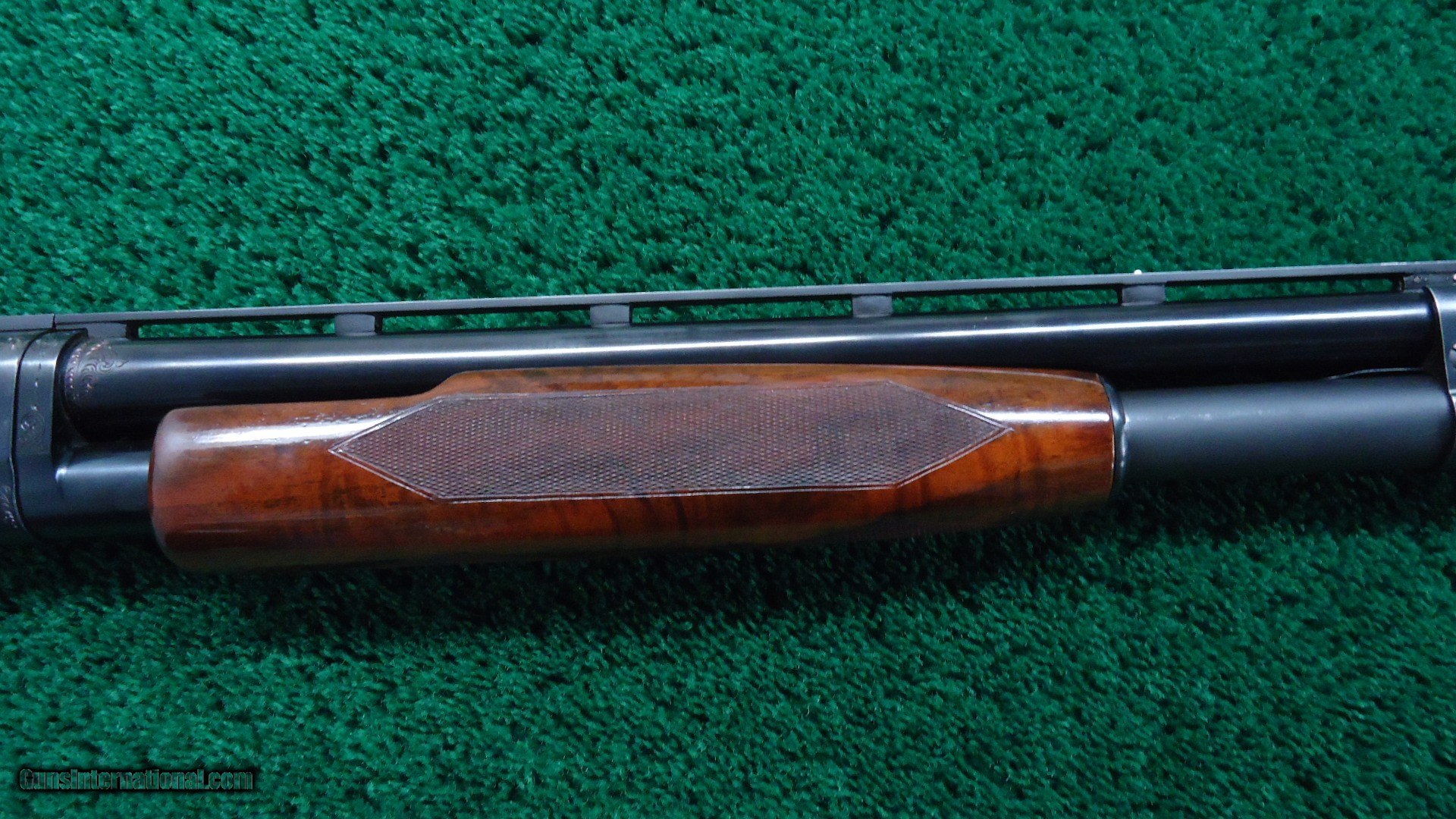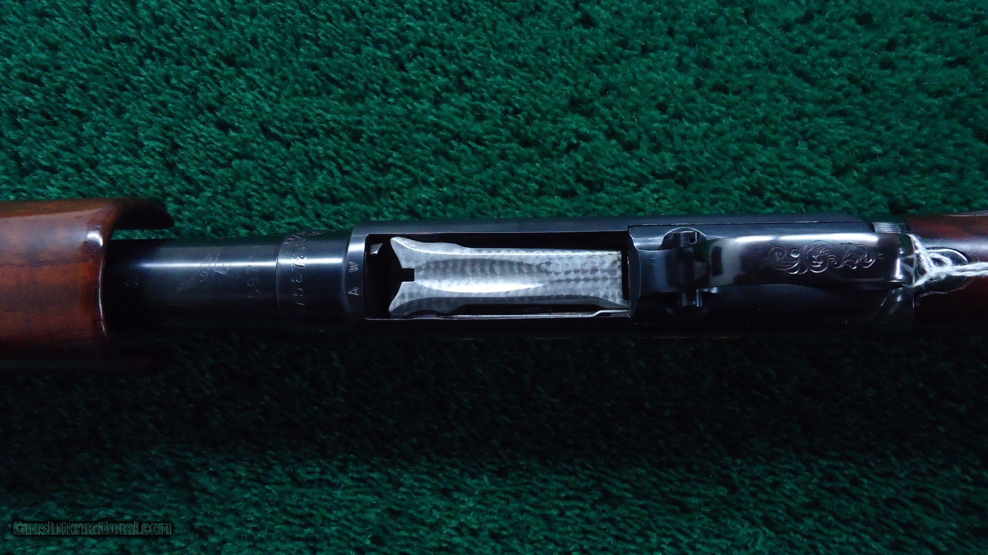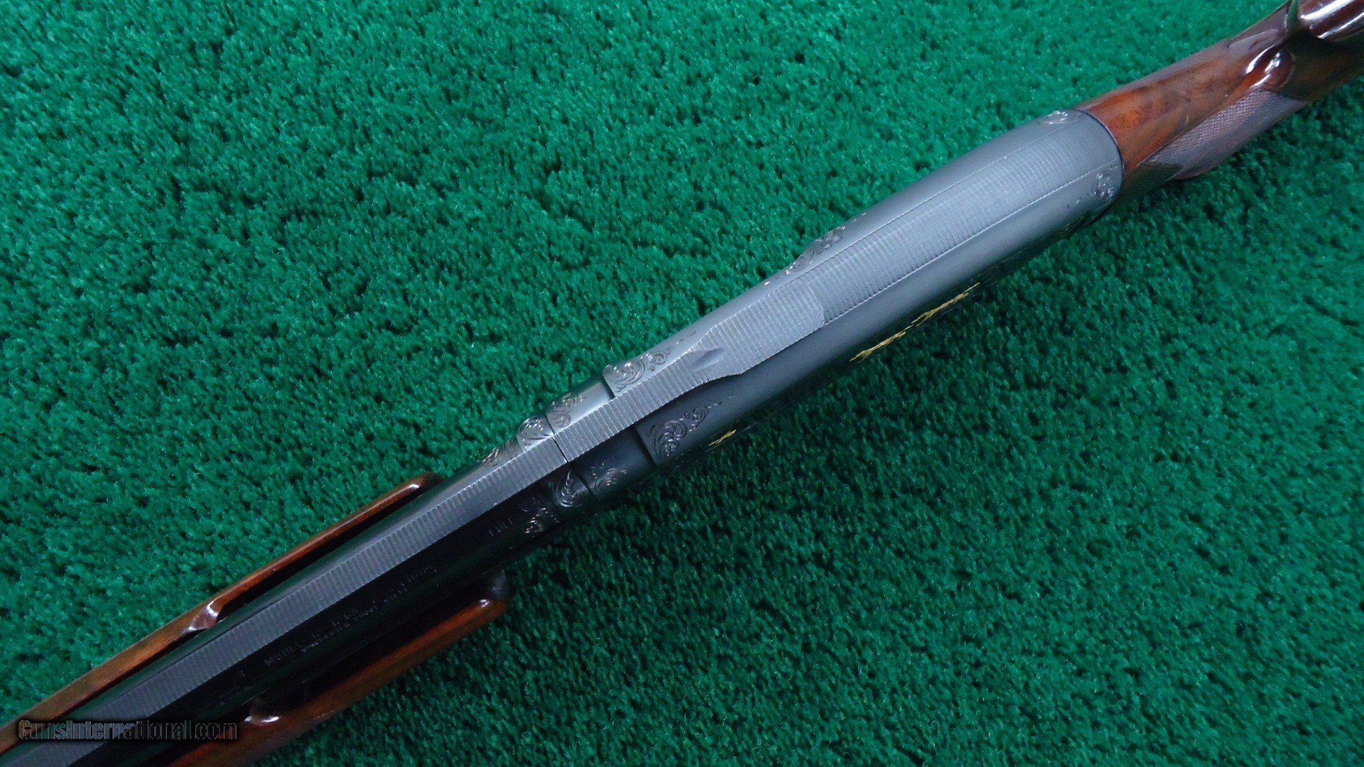 Description: 30 inch vent rib barrel 12 gauge with Full choke. Bright shiny excellent bore. Gun is nicely engraved by after market engraver. It has the typical 12-5 Winchester engraving with gold line borders and gold fowl and hounds. Nicely done engraving by "A W". Wood has a high gloss finish and measures 14-1/4 inches LOP. The barrel appears to have been refinished and retains most of that finish. The receiver has about 90% thinning original blue. A very attractive fancy gun. Leroy Merz Antique Firearms specializes in antique and vintage Winchesters and other fine American firearms. Since 1965 Mr. Merz has taken part in the world of firearms and has been a contributor to many well known reference books. We have hundreds of additional guns in every price range at our home online. Search for Merz Antiques in google. SOLD Curio/Relic: Yes Shotgun Gauge: 12 Gauge |
