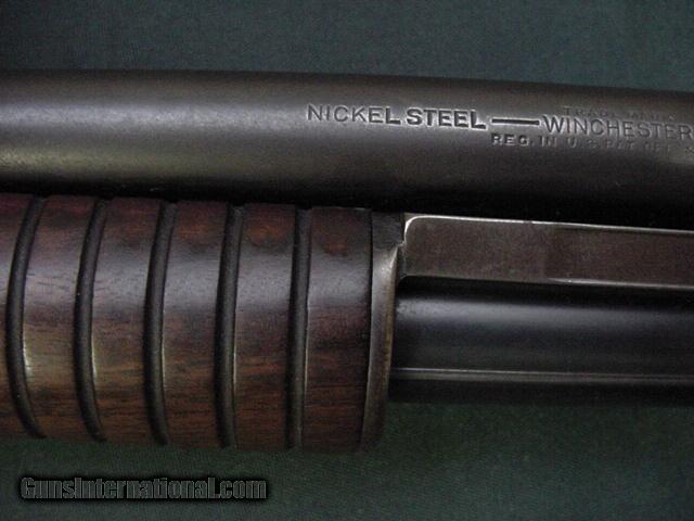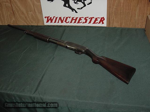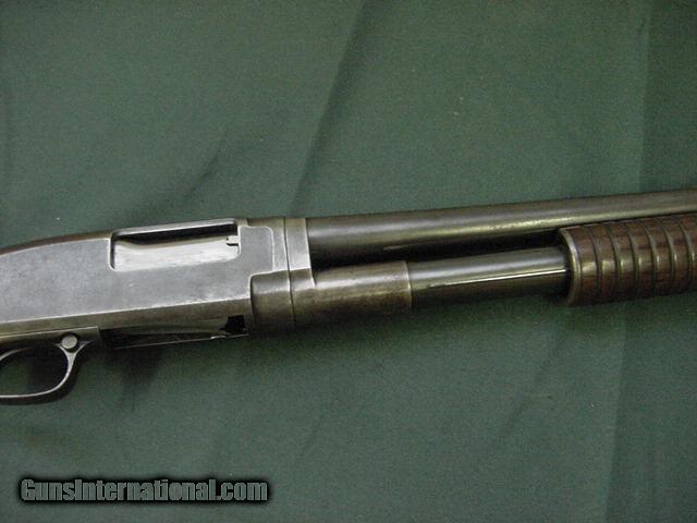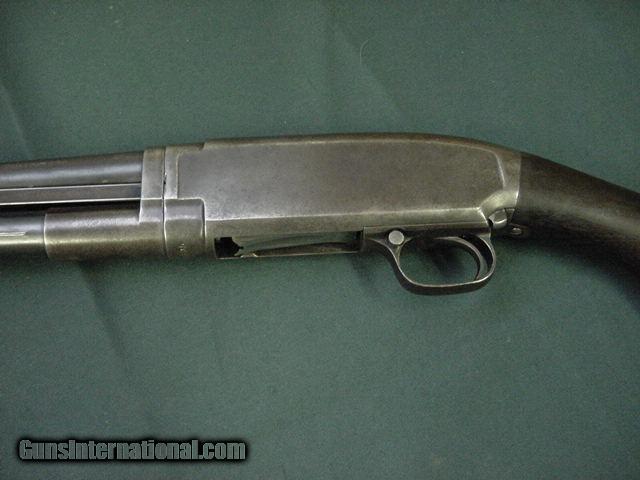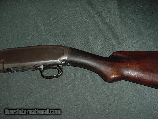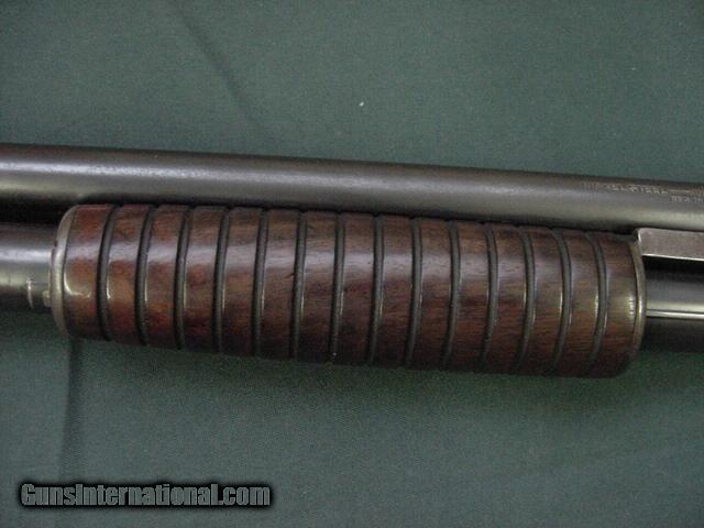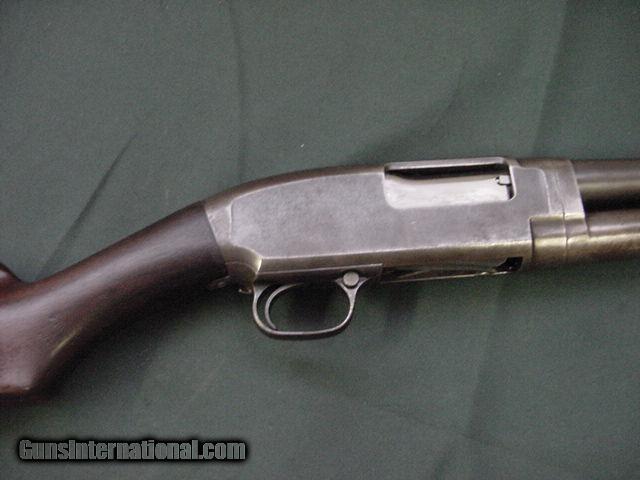 Description: 5060 Winchester model 12 16 gauge 26 inch cylinder choke barrel and it is marked so. all original, plain barrel, bore is brite and shiny, original and not cracked butt plate, action is smooth as silk,no cracks no gouges.good condition for being built in 1920. this is rare gun in untouched condtiton SOLD |