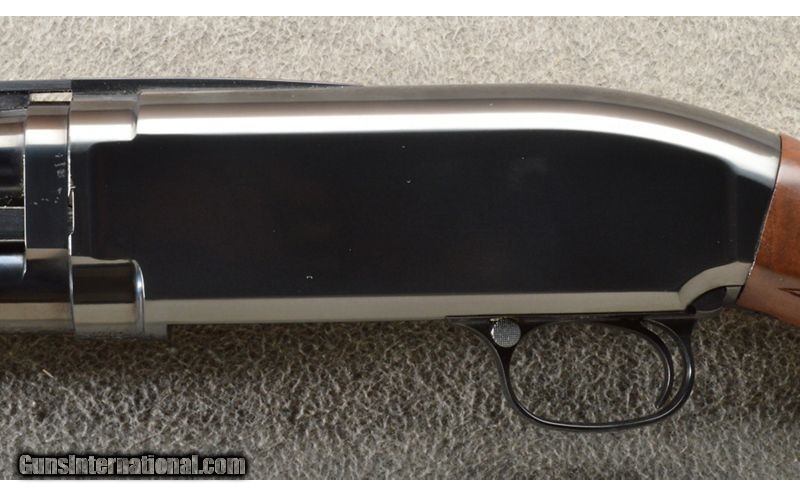 Description: This is a like new Browning made Winchester Model 12 in 20 gauge. The wood and blue are like new. There may be a minor flaw as the shotgun is pre-owned and has been handled. This is one of several Winchester/Brownings with the SN#00109xxxxx that are new in the box. 20 Gauge SOLD Chambers: Pump action repeater 4+1. Metal Condition: Excellent like new. Wood Condition: Excellent. Bore Condition: Like new. Barrels: 25" Gloss blue with a vent rib. Triggers: Single blue. Stock Dimensions: 14" LOP. Fore End: Very nice checkered walnut. Butt Pad: Very nice walnut with a checkered pistol grip and a grip cap. The shotgun has a black Browning butt plate. Weight: 7 lbs. 1 oz. Sights: Single silver color front bead on the vent rib. Chokes: Fixed MOD. Item Location: Owatonna, MN |