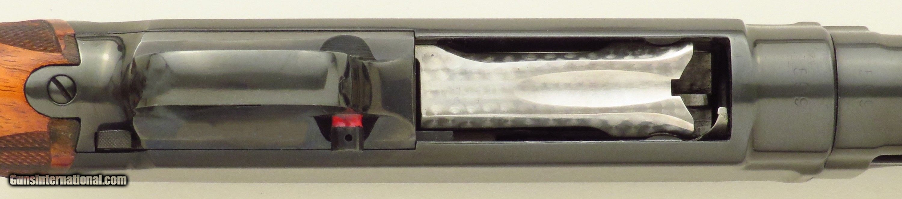Description: Custom Winchester Model 12 20 gauge. Wearing first-year-production serial number 599, it has a 25-inch nickel steel barrel (cylinder, Simmons vent rib with double beads). Custom features include jeweled bolt/lifter and an AAA-grade English walnut stock (fine borderless wrap checkering accented with ribbons, Pachmayr recoil pad. The work is unattributed. DIMENSIONS: Weight is 6.6 pounds. Length-of-pull is 14.3 inches, drops are 1.5 and 2.4 inches, and cast off is approximately .25-inch. CONDITION: The bore is bright. Action locks tightly. When assembled, there is some play between the barrel and the action. As refinished, metal is approximately 90 percent. Wood finish is approximately 95 percent. There are chips on either side of the tang screw and what appears to be a healed hairline as well. The price is firm. Shotgun Gauge: 20 Gauge Price: $1,500.00 Shipping: $85.00 Contact Seller |