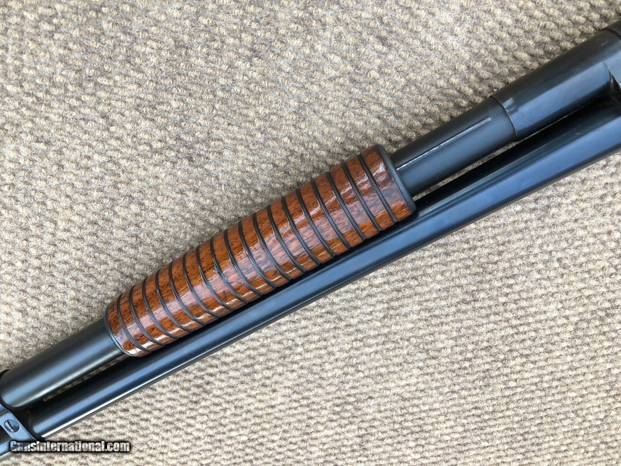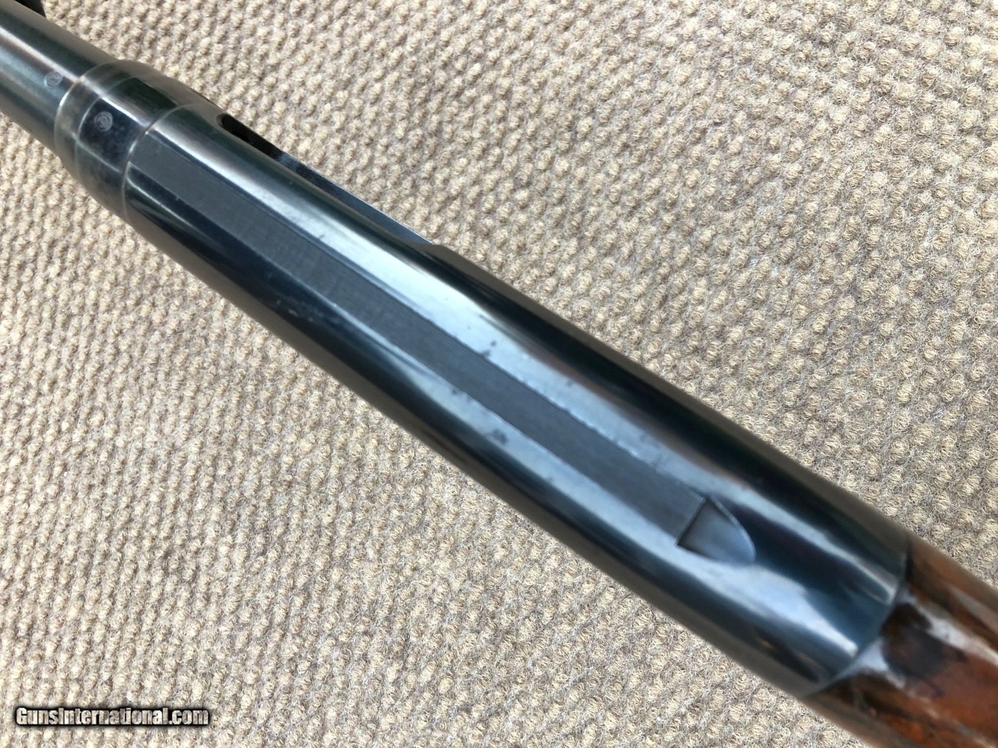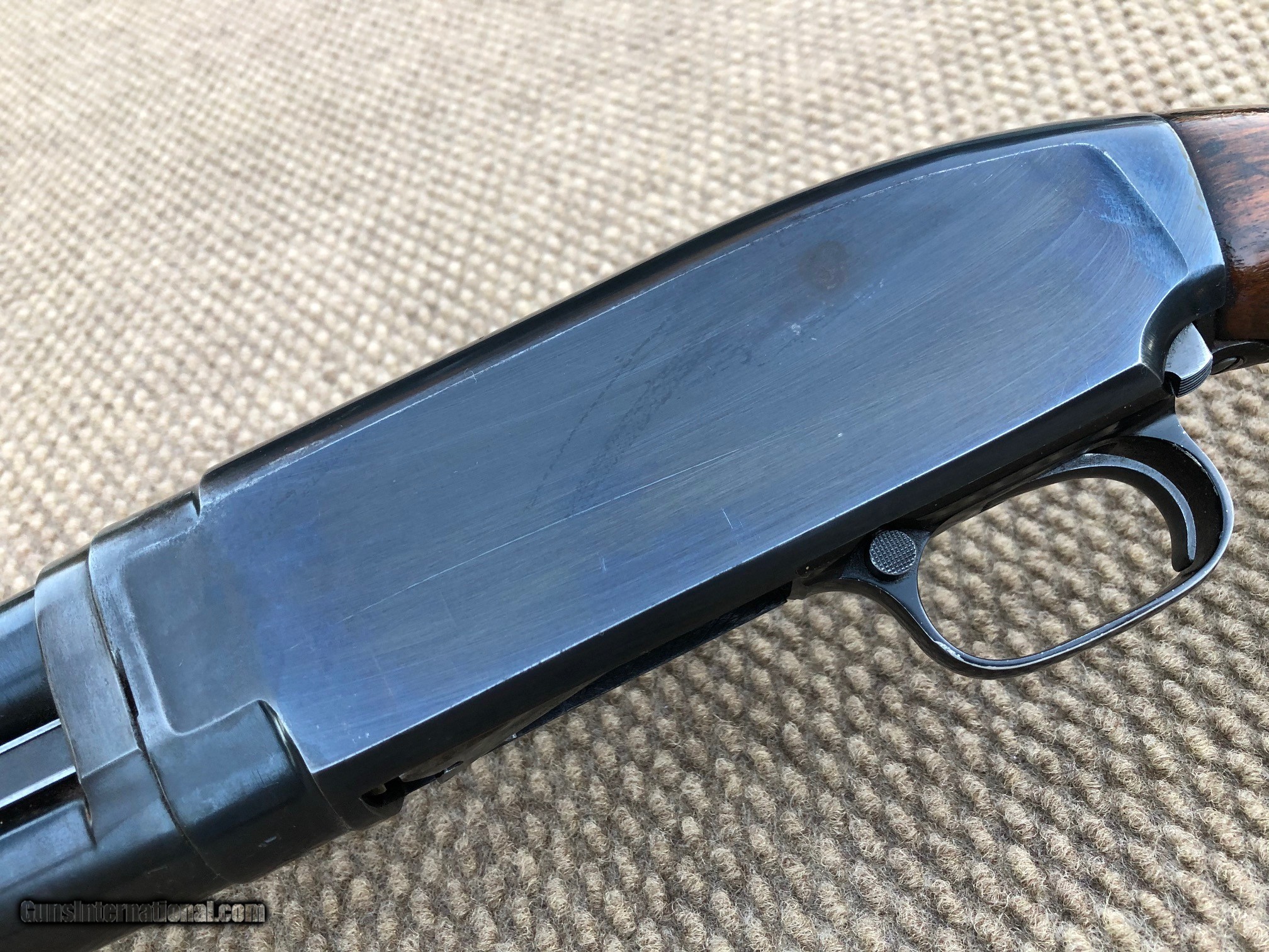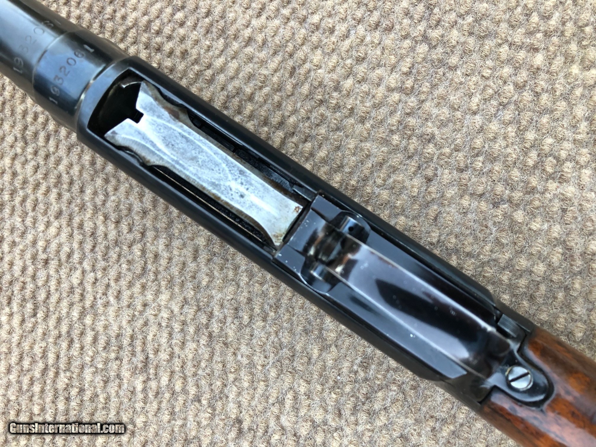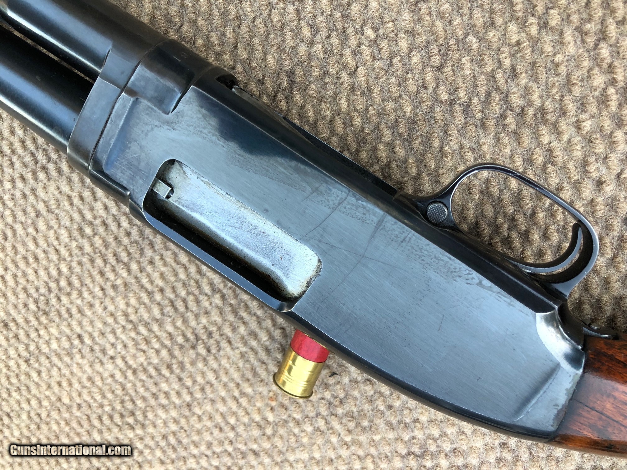Description: Model 12 20 Gauge pump with 28" plain, modified choke barrel. Serial number 1961084 makes this 1963 manufacture. Extensive bluing loss on one side of receiver and stock appears to have been refinished at some point. Bores are shiny and gun functions flawlessly. Additional photos available upon request. $35 ground shipping to your FFL in lower 48 only and 3 day inspection period provided to purchaser. SOLD Shotgun Gauge: 20 Gauge Manufacturer: Winchester Model: 12 Serial Number: 1961084 Barrel Length: 28 Chokes: Modified |