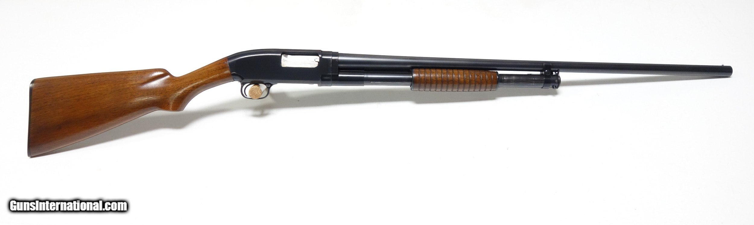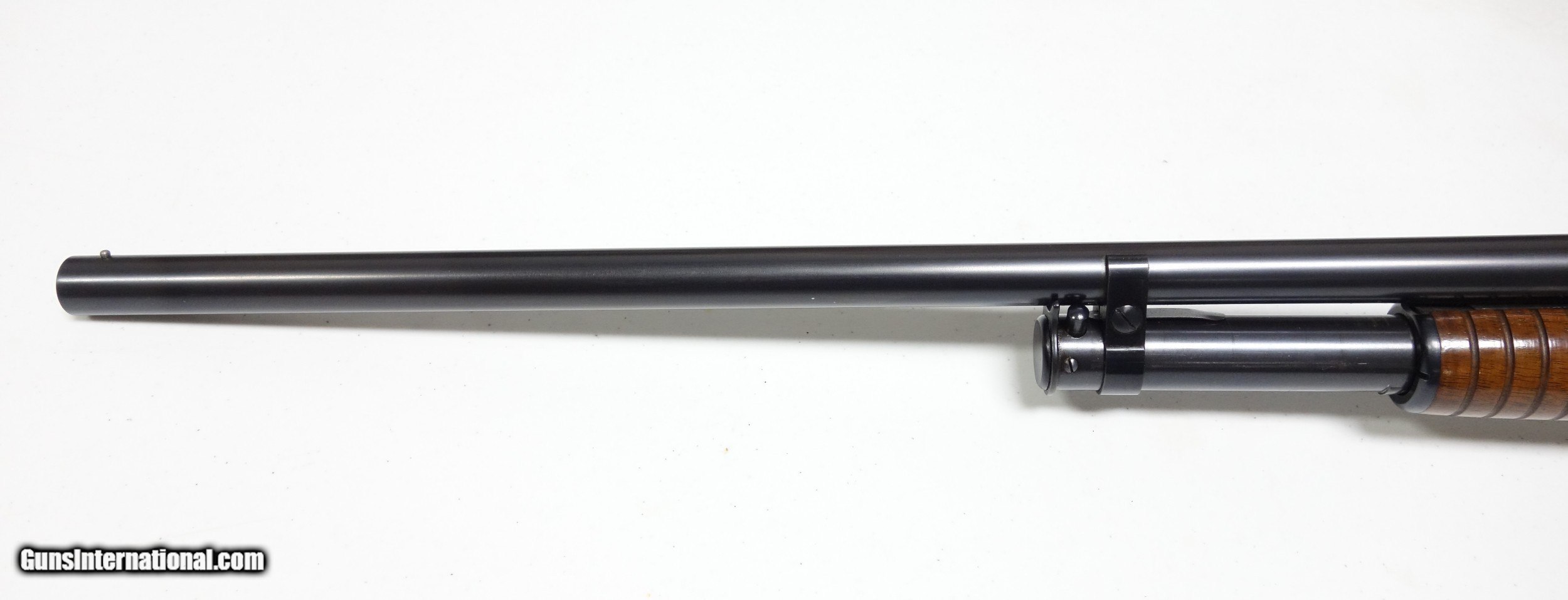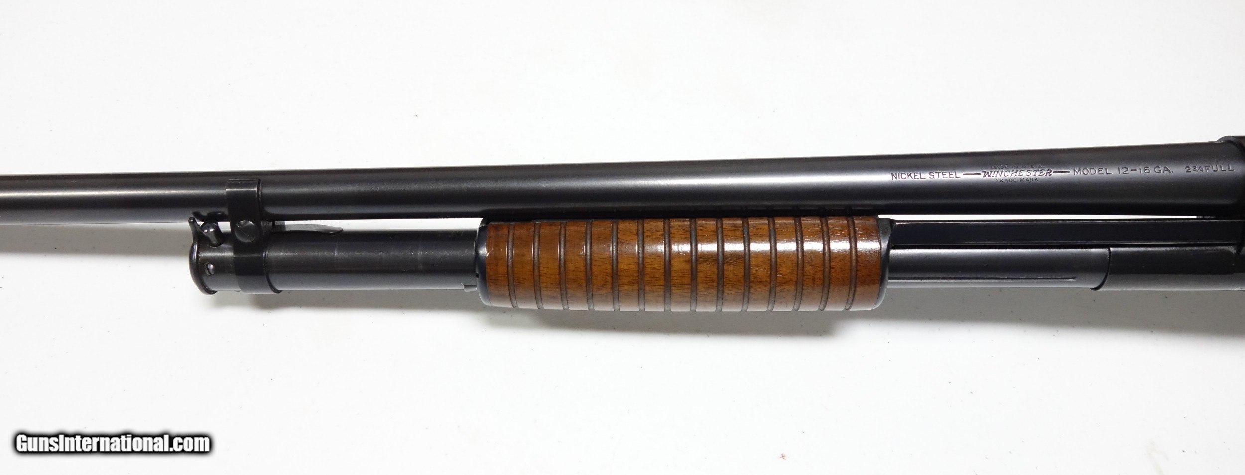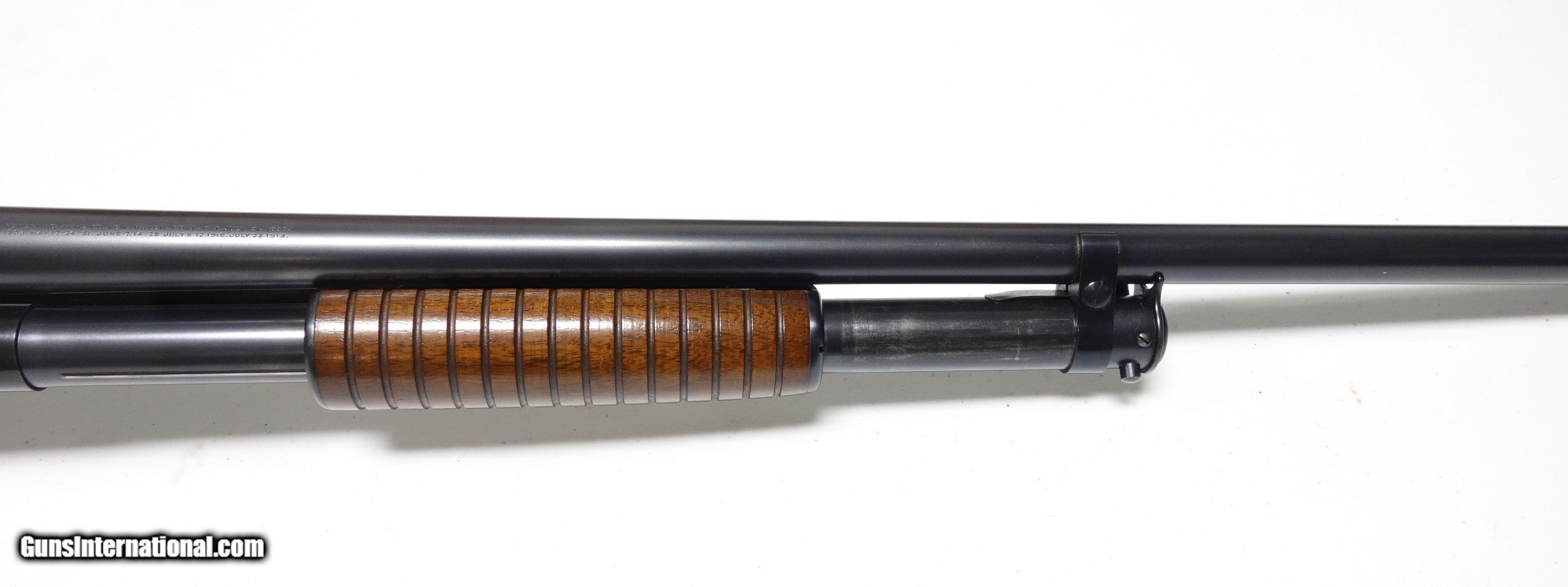 Description: Fabulous Pre War Winchester Model 12 in 16 gauge. This shotgun is 100% original in all regards and the best example I have ever seen or owned. The overall condition easily rates 98% or better with only minimal signs of handling. S/N 596*** made in 1929! The 28" nickel steel barrel has a mirror bore. The choke is Full. The chamber is 2 3/4" and is factory stamped as such on the barrel and under the receiver S/N after having made the transition from 2 9/16" shells just two years prior in 1927. The mechanics and lock up are naturally like new. There are even remnants of what appears to be factory cosmoline type grease inside of the action components and I doubt this shotgun has been fired much if any beyond factory testing. You will look long and hard to ever find one as good. SOLD Curio/Relic: Yes |